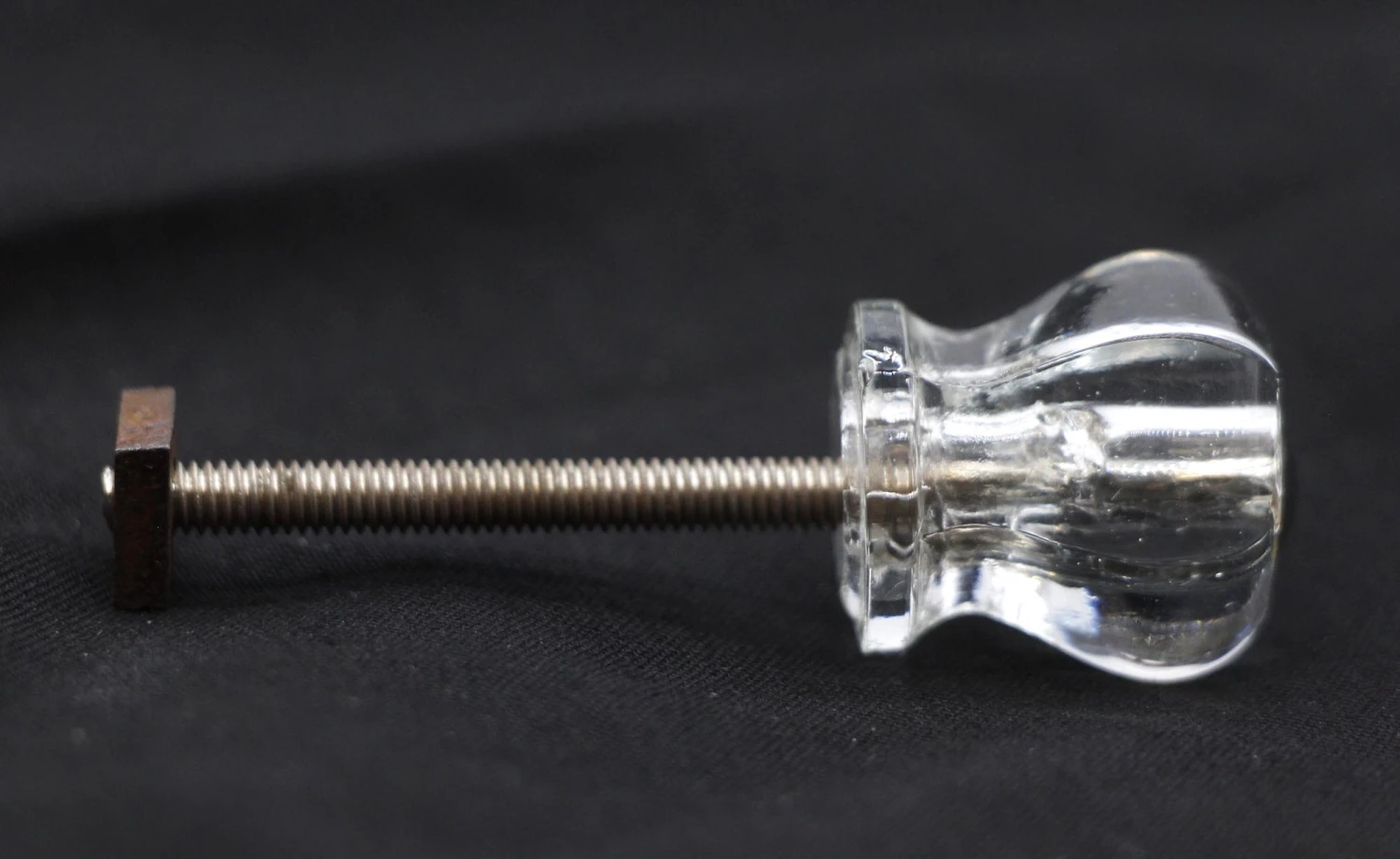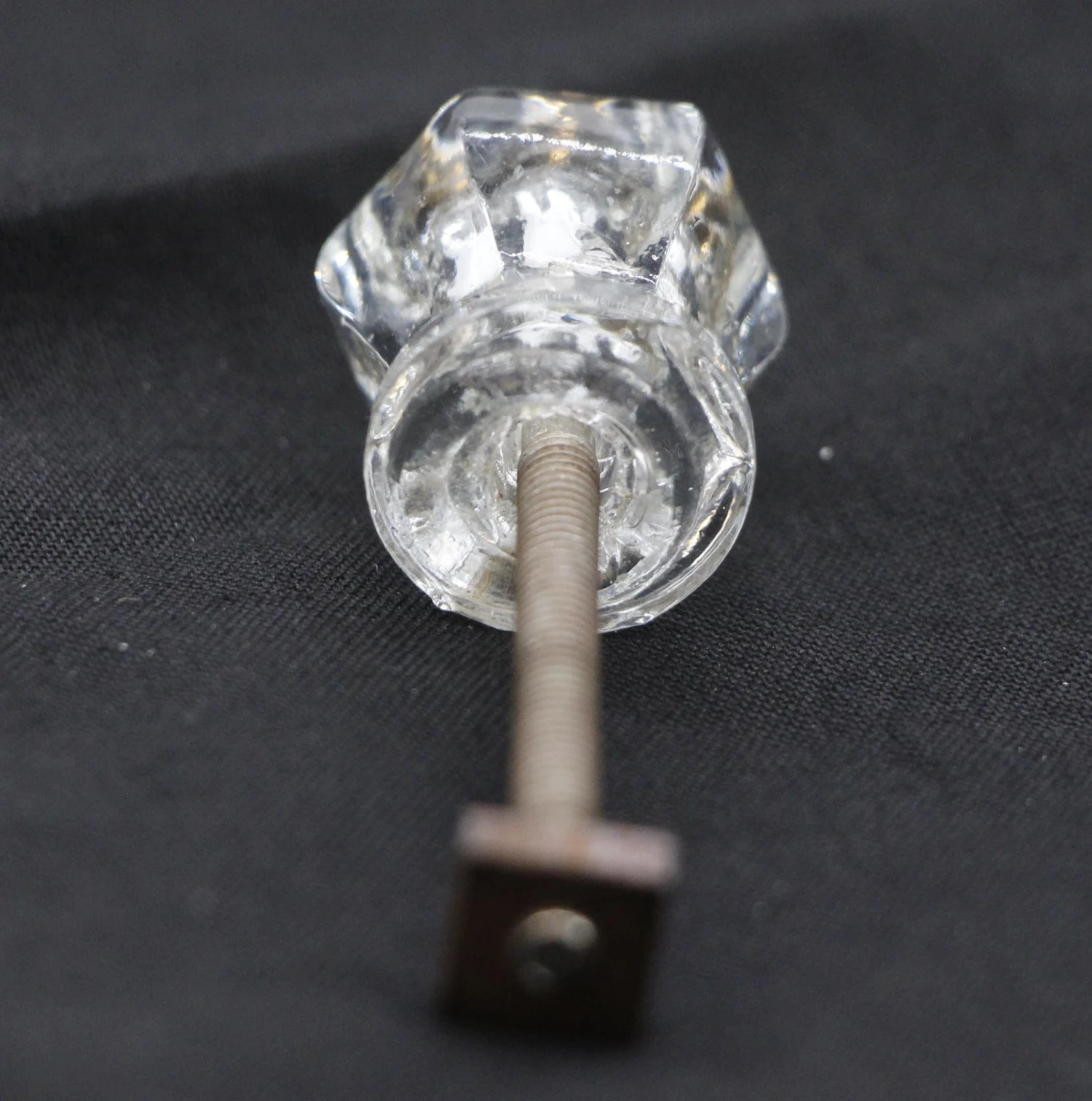 Tiny clear glass hexagon shaped drawer or cabinet knobs. Screws included. Priced each.