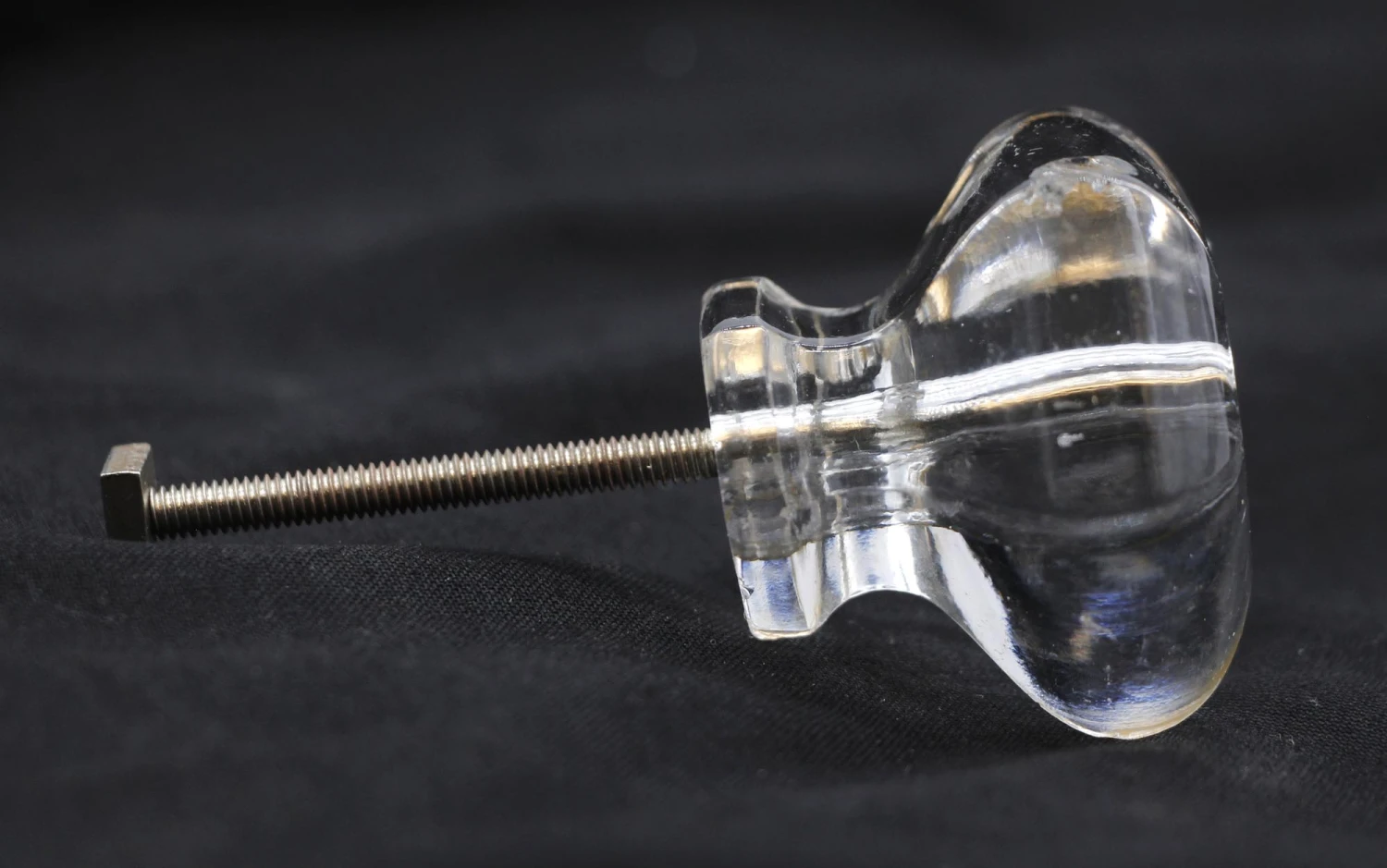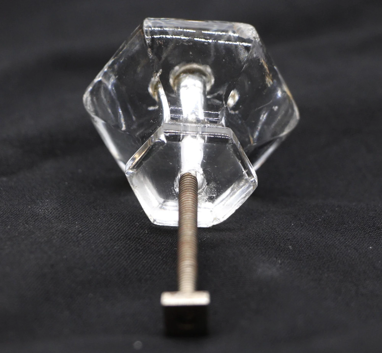 Hexagon shaped clear glass cabinet or drawer knobs. Screws included. Priced each.