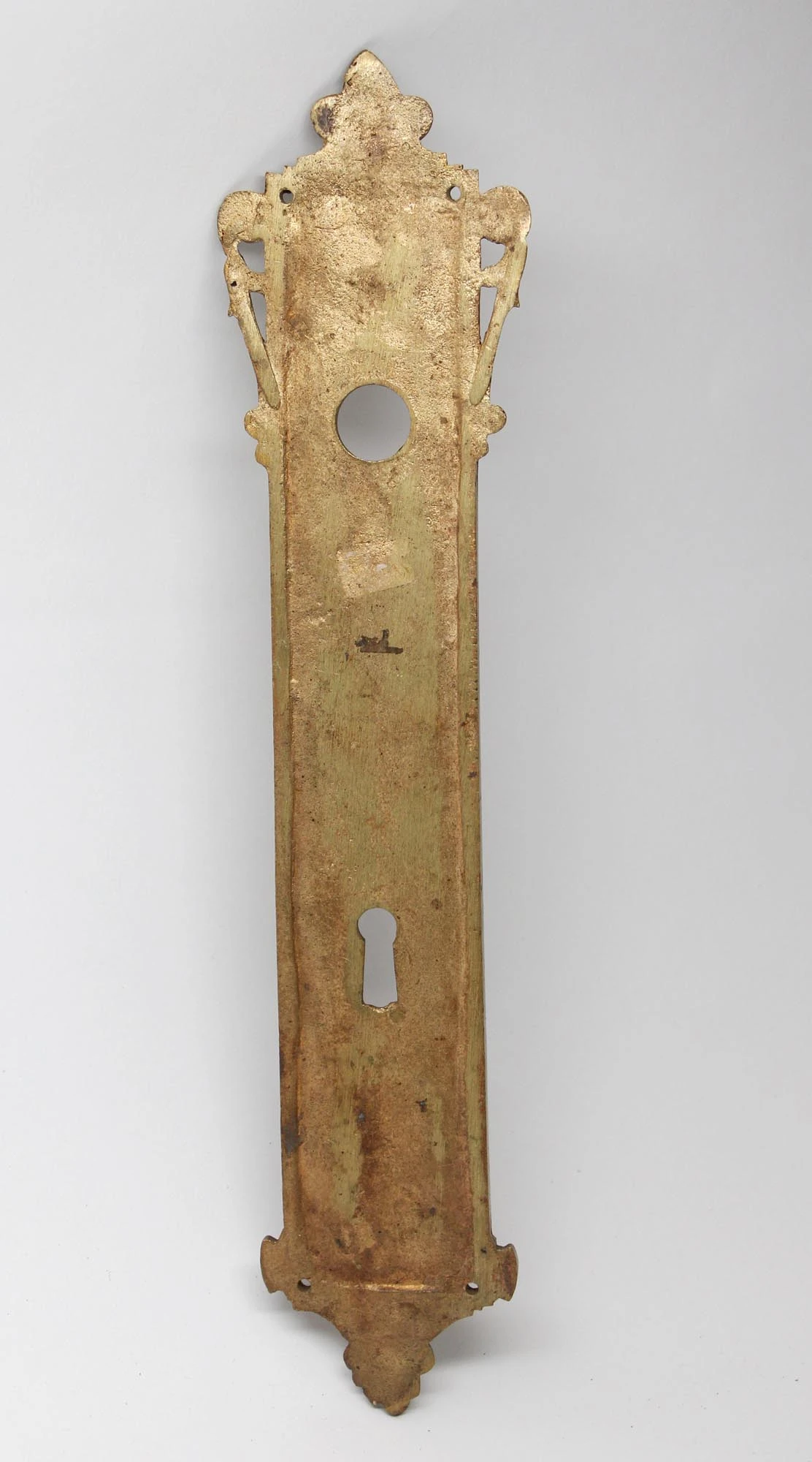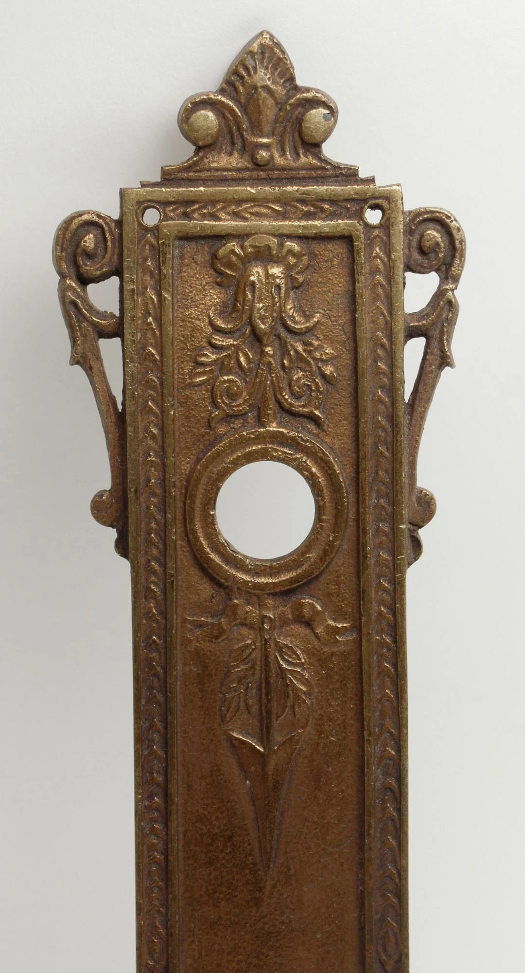 Cast bronze single door plate with keyhole. This is used on an interior door. Sold as one single plate.