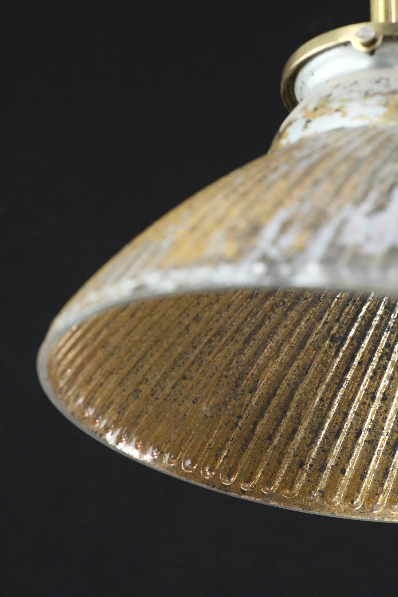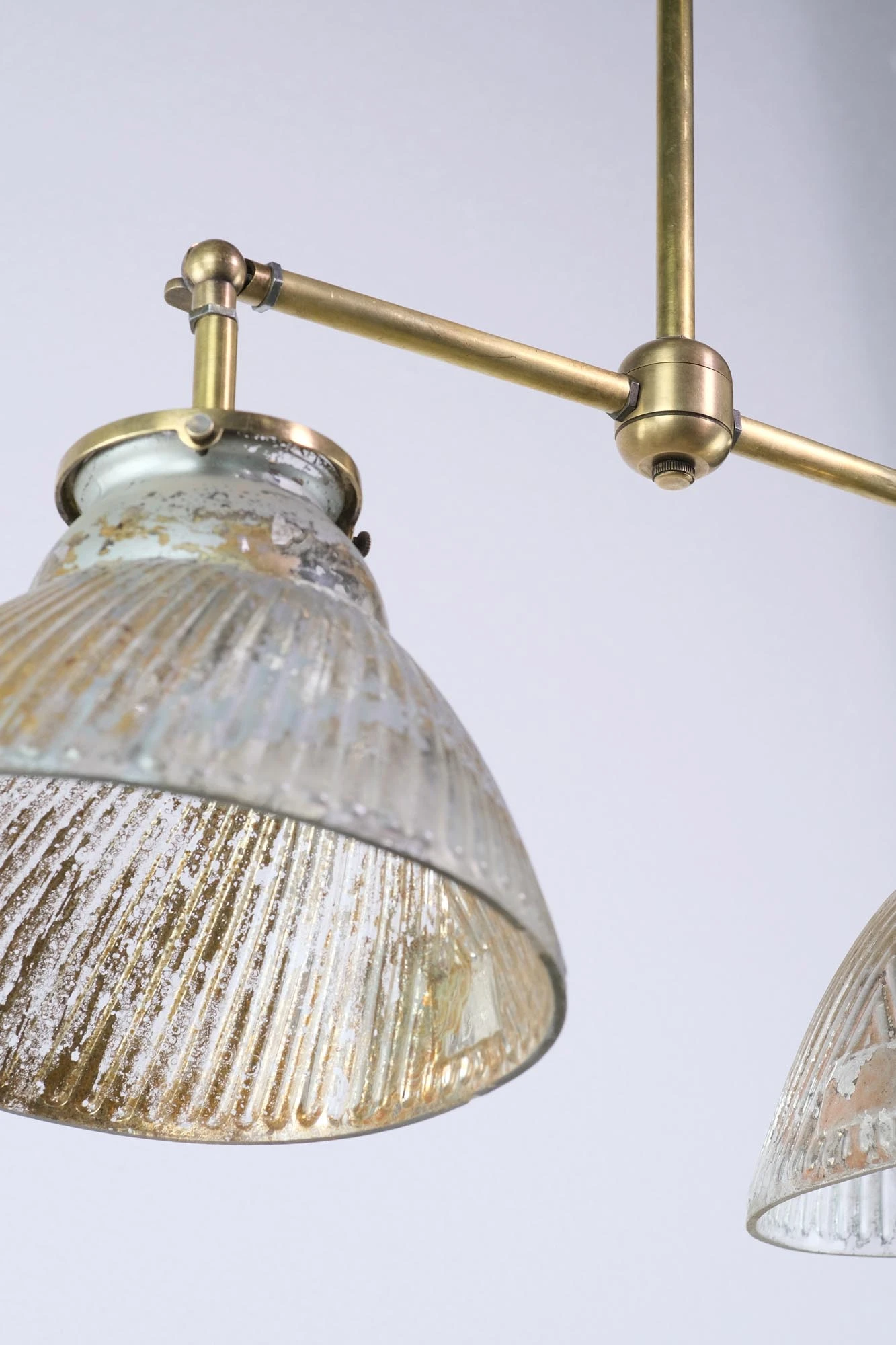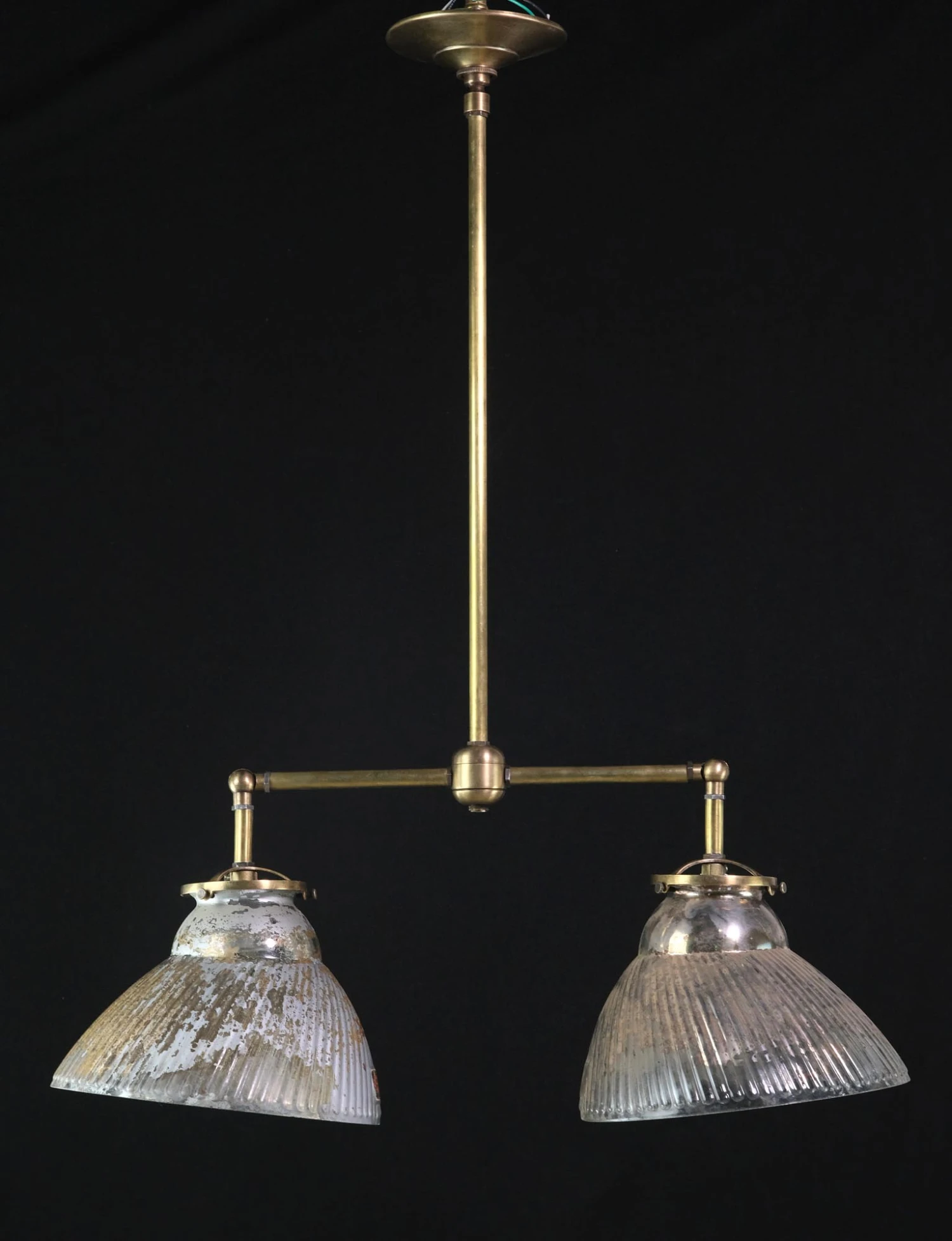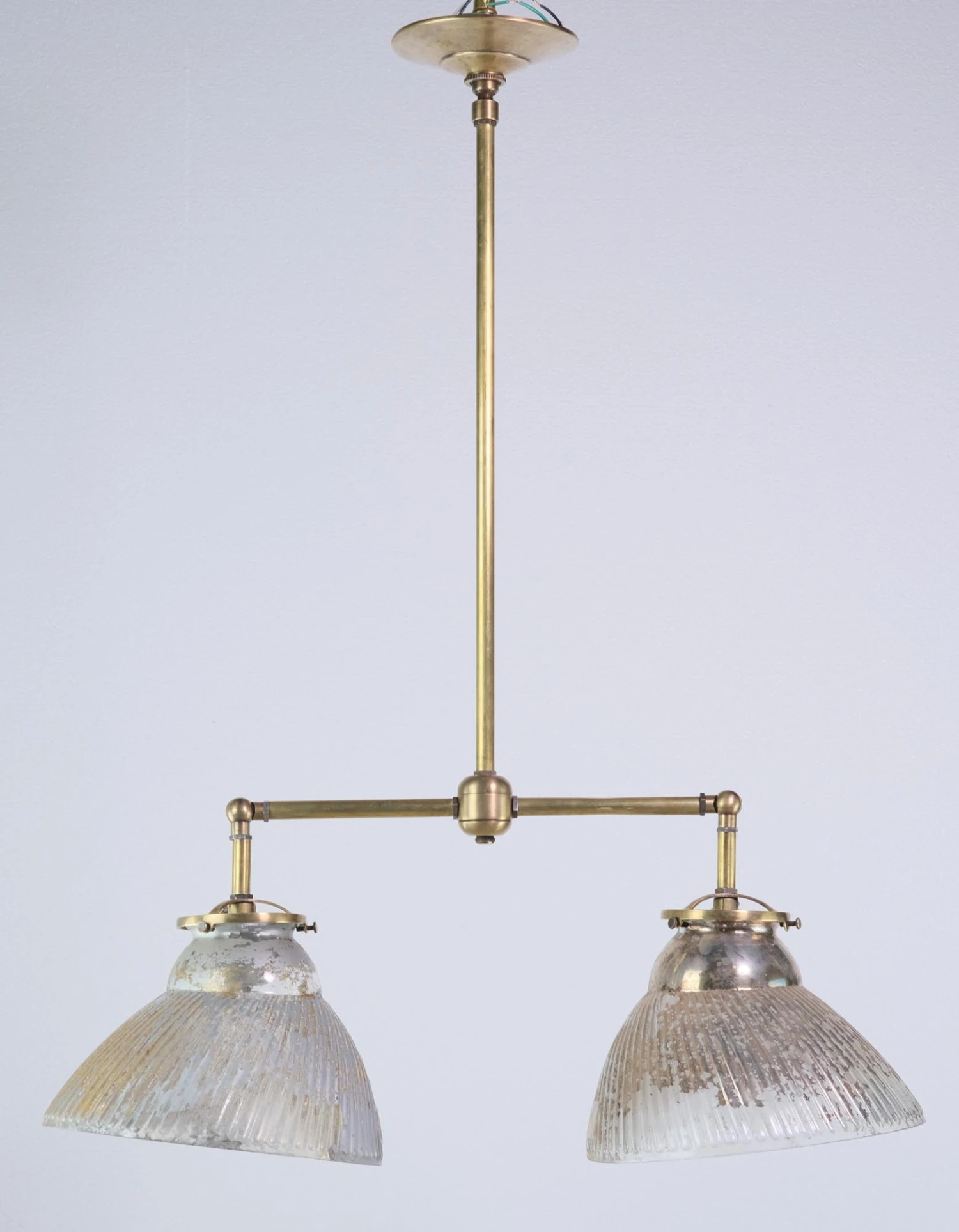 1910s X-Ray Glass Brass Pole Double Down Pendant Light
