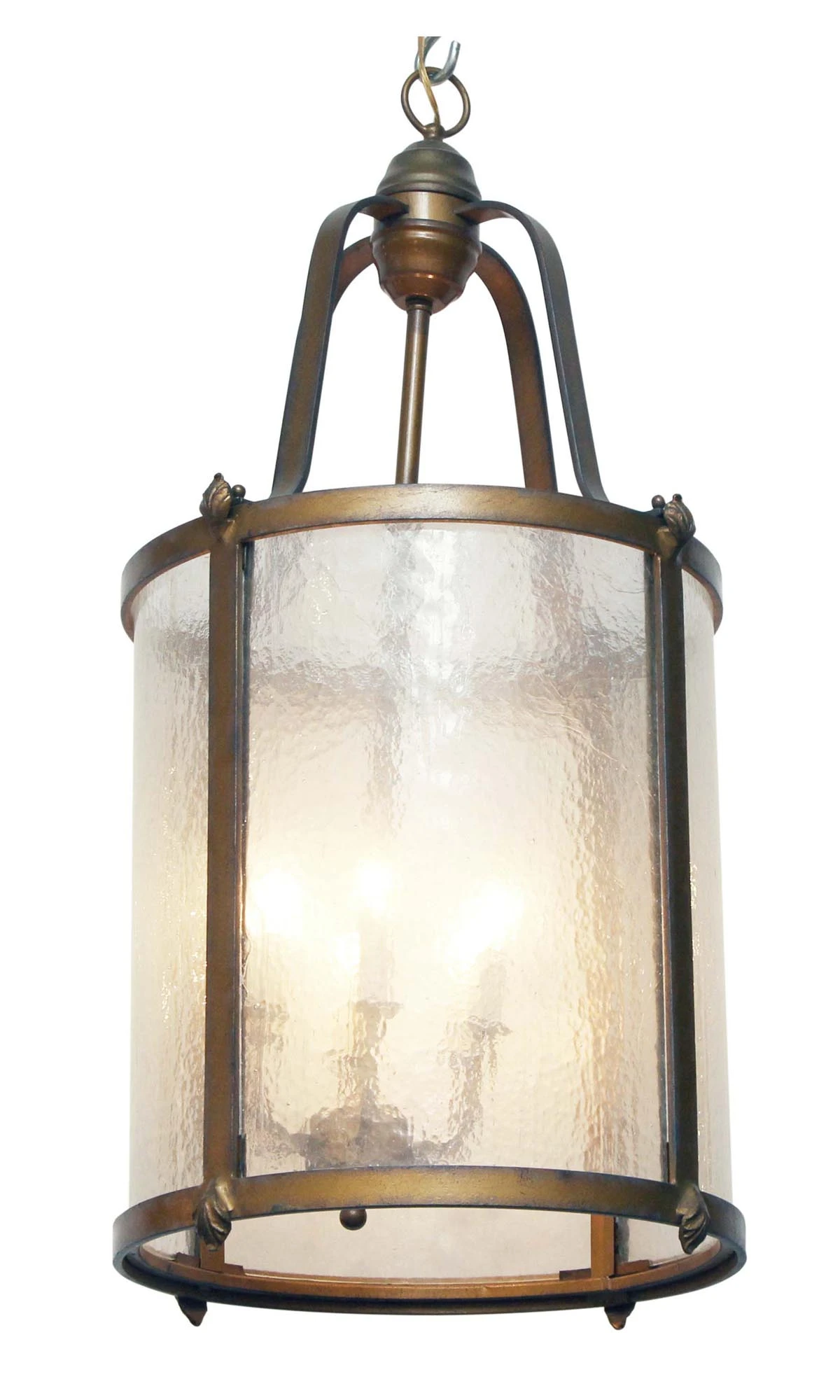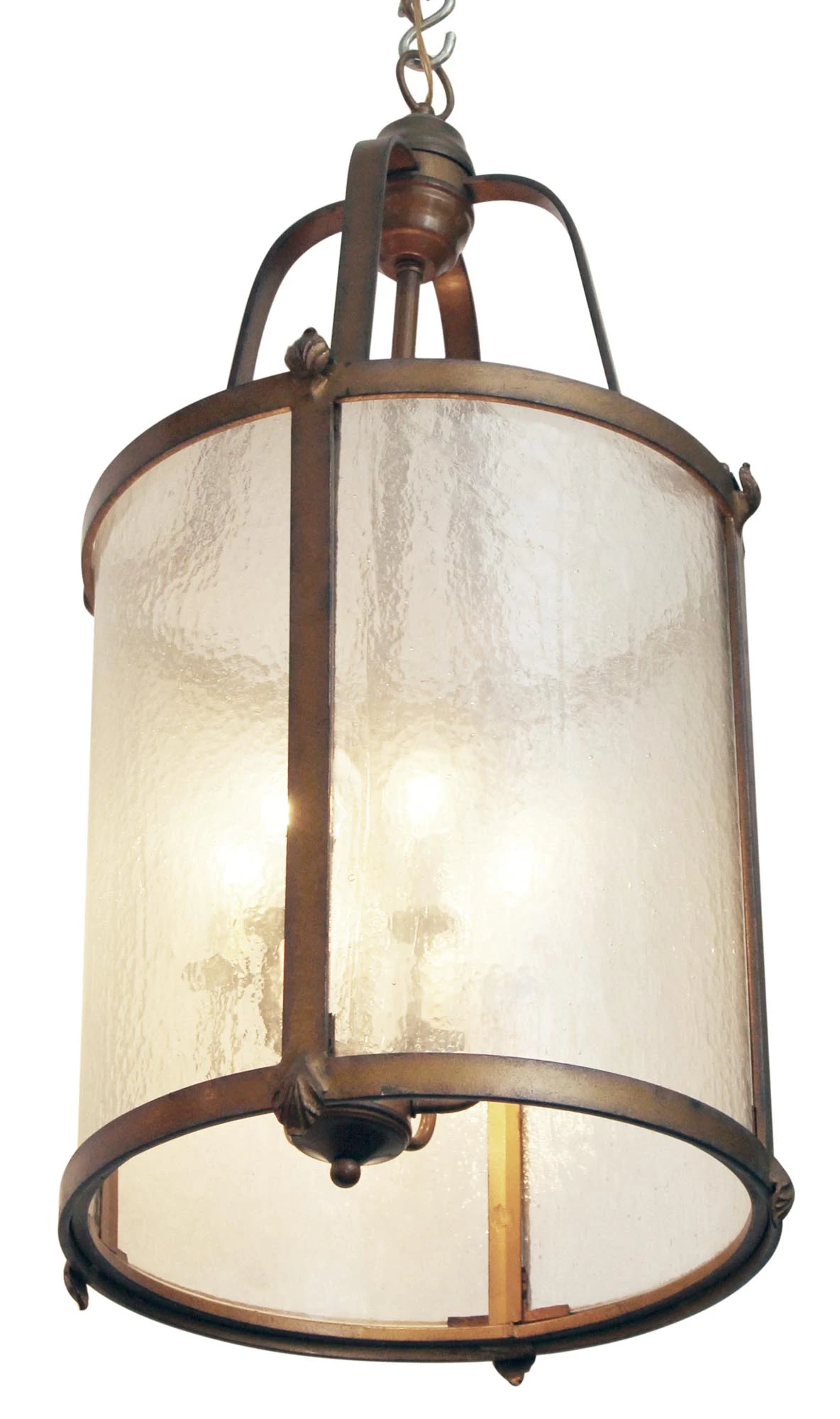 1920s Traditional Seeded Glass & Bronze Ceiling Lantern