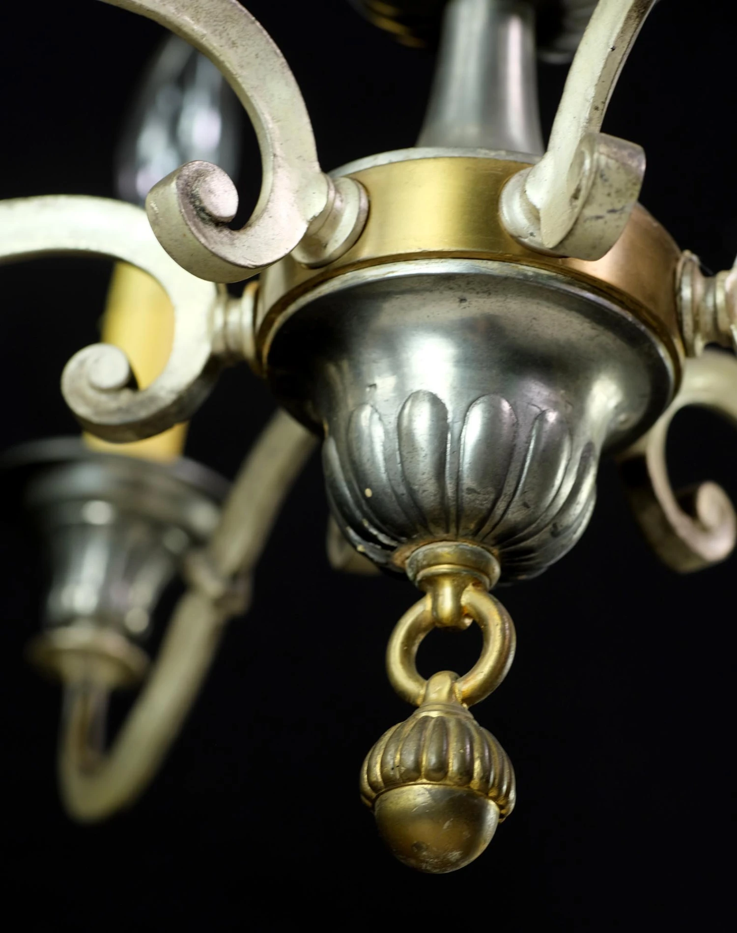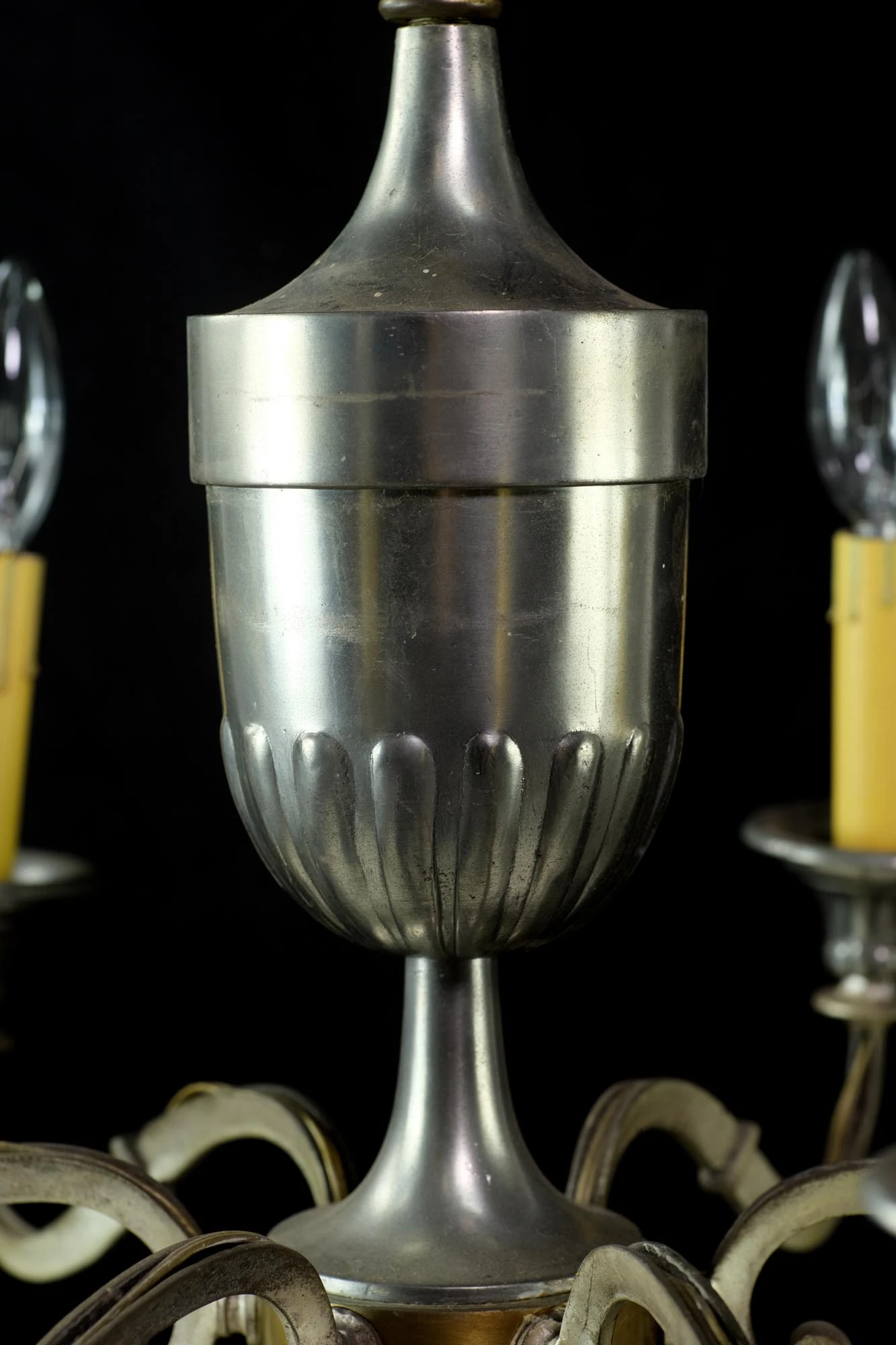 1940s Federal Nickeled Brass 6 Arm Chandelier