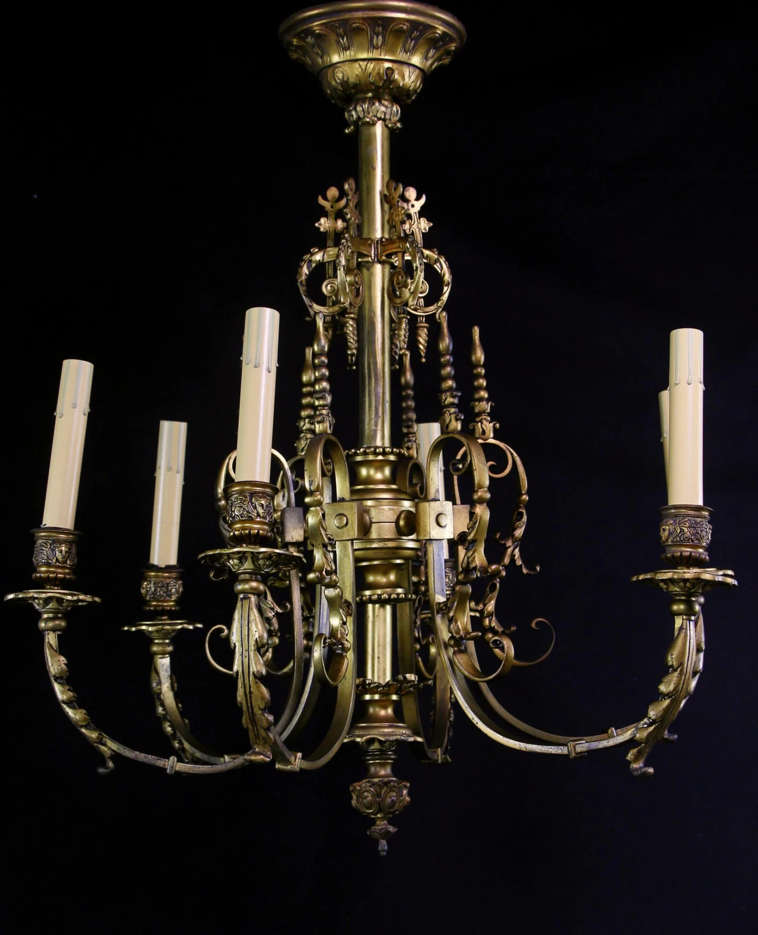 Heavy cast bronze French chandelier with intricate details from the 19th century. Price includes restoration.
