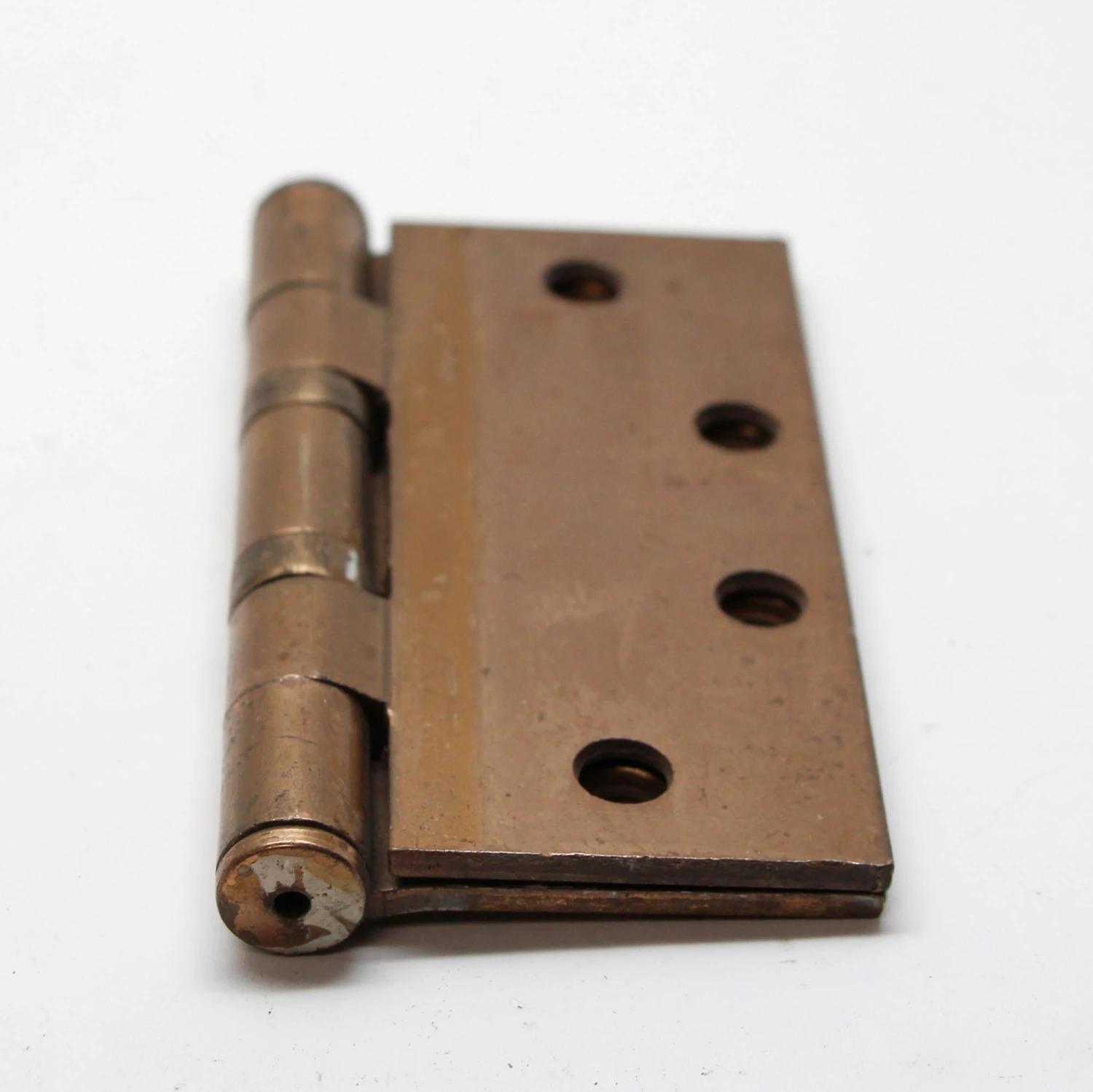 McKinney signed brass plated steel standard vintage door hinge with flat tips, ball bearings, template hole pattern, and five knuckles. Priced each.