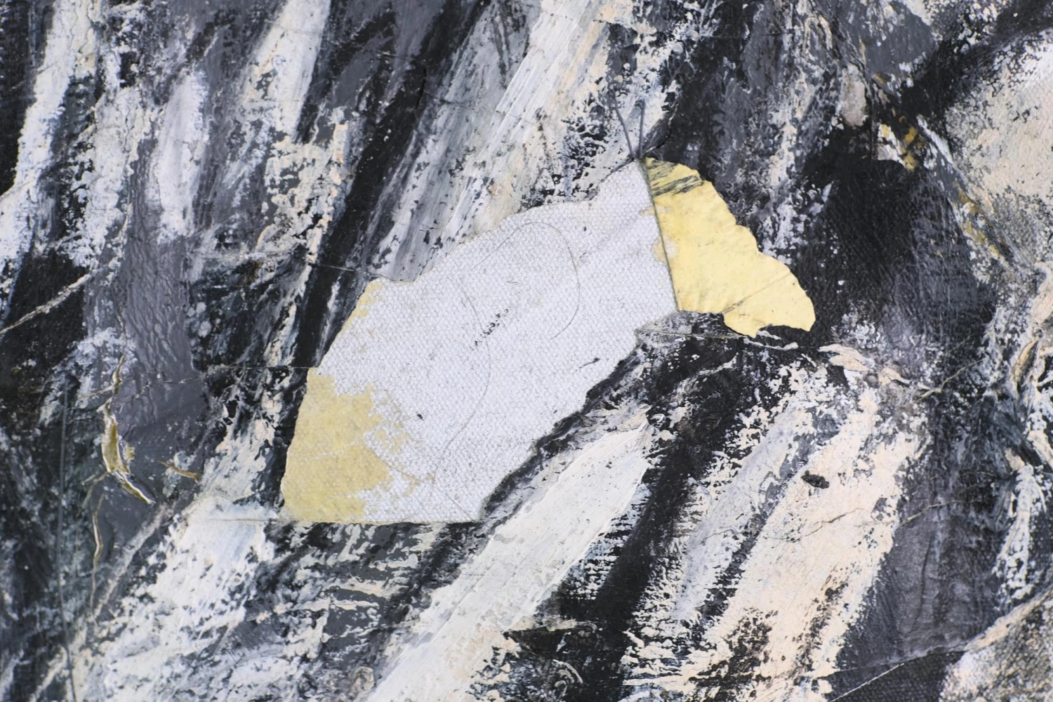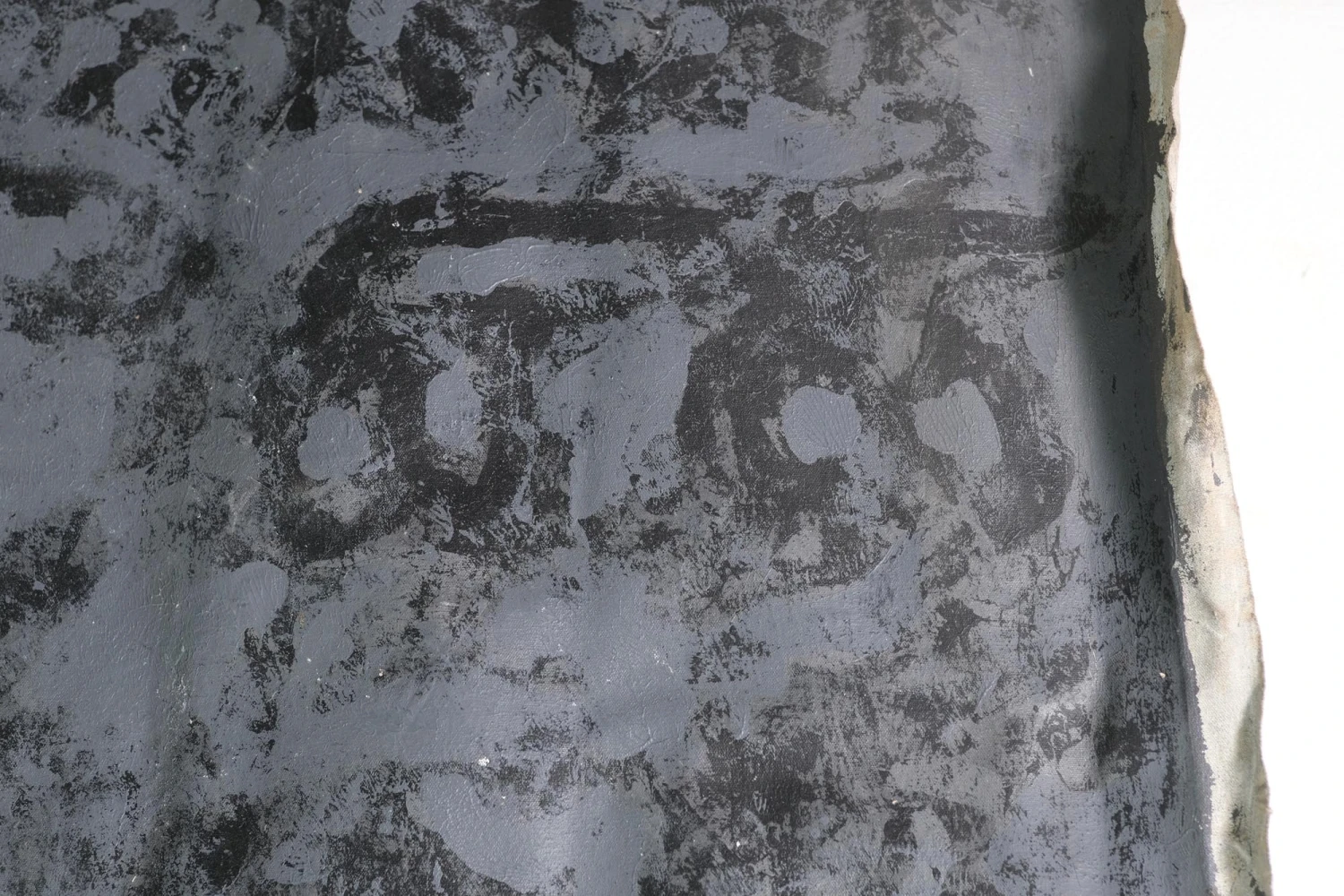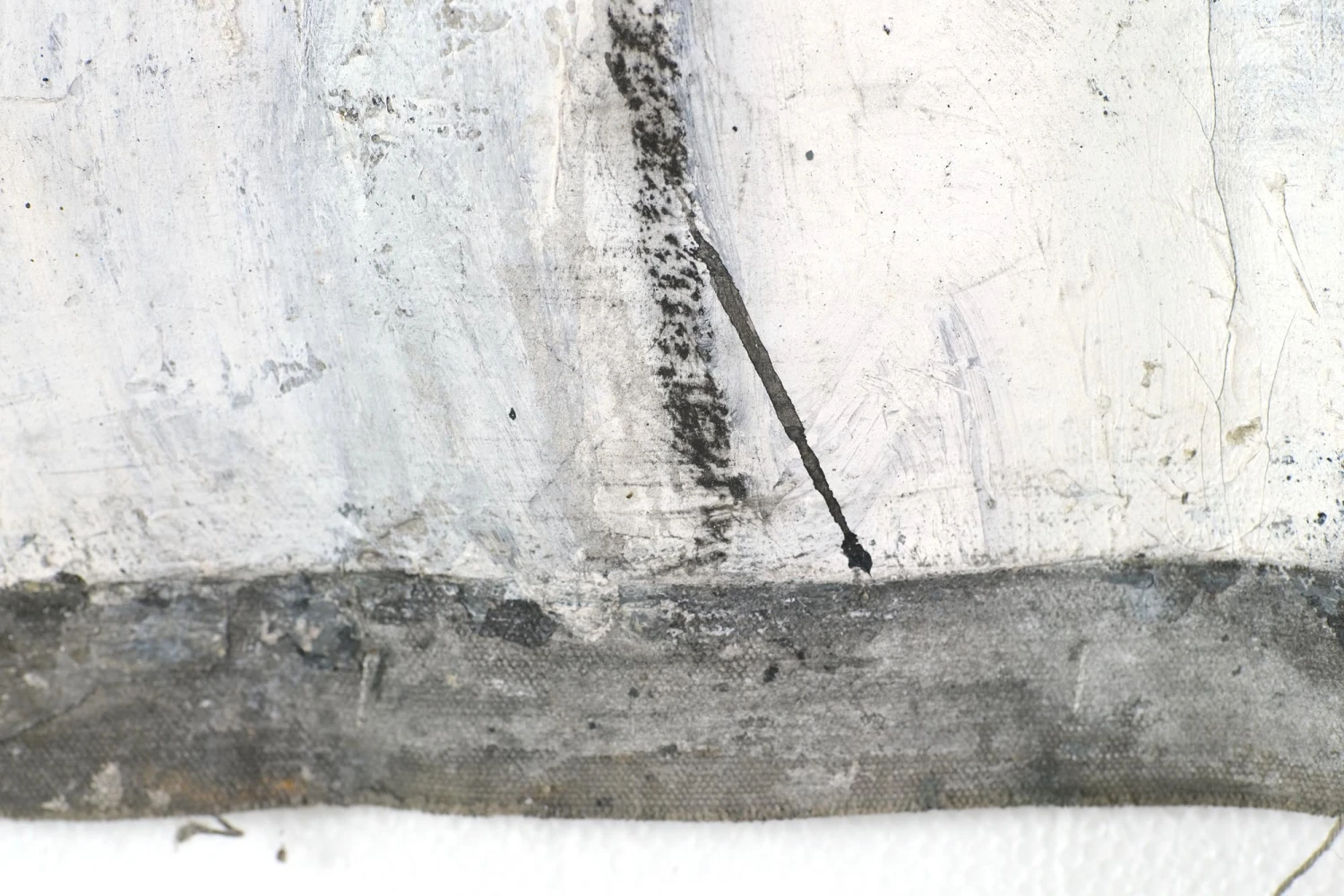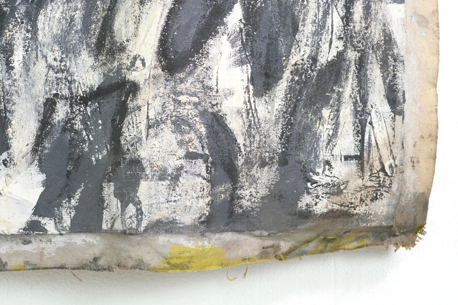 Unsigned acrylic, latex, and oil figural abstract painting on canvas. There are some minor cracks and chips. Please see the photos.