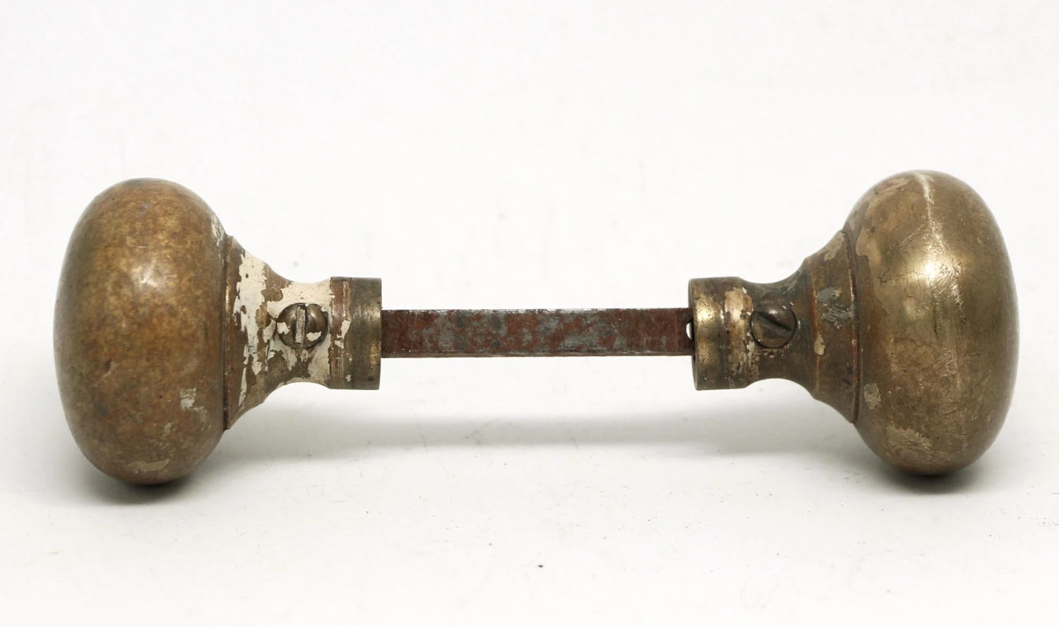 Solid cast doorknobs. The manufacturer is unknown. Priced as a pair of knobs with spindle.