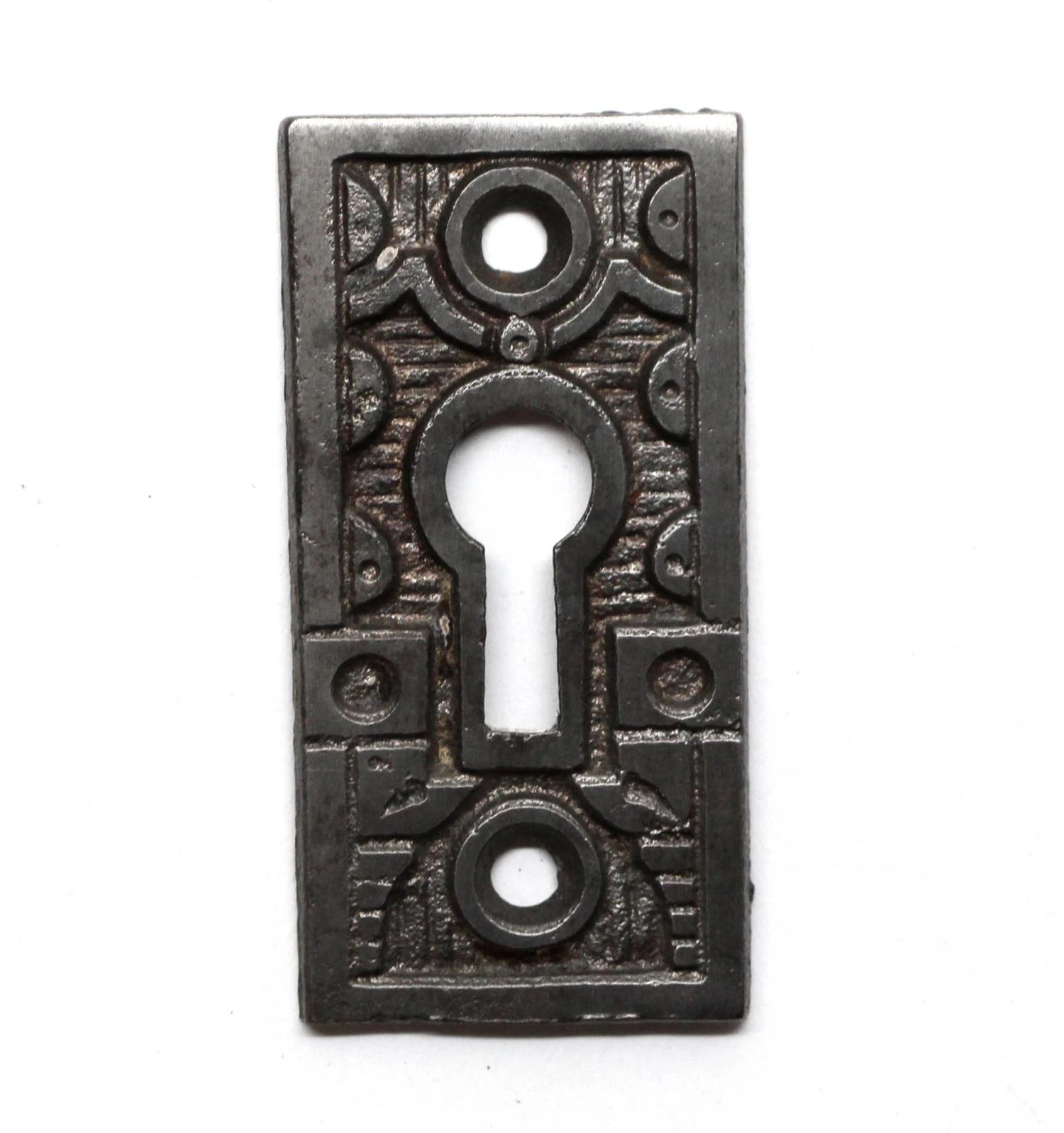 Cast iron Aesthetic keyholes with a black finish. Good condition with appropriate wear from age. Priced each.