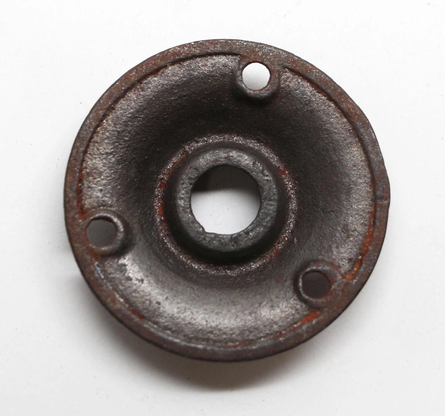 Decorative cast iron door rosettes with a black patina. Good condition with appropriate wear from age. Priced each.