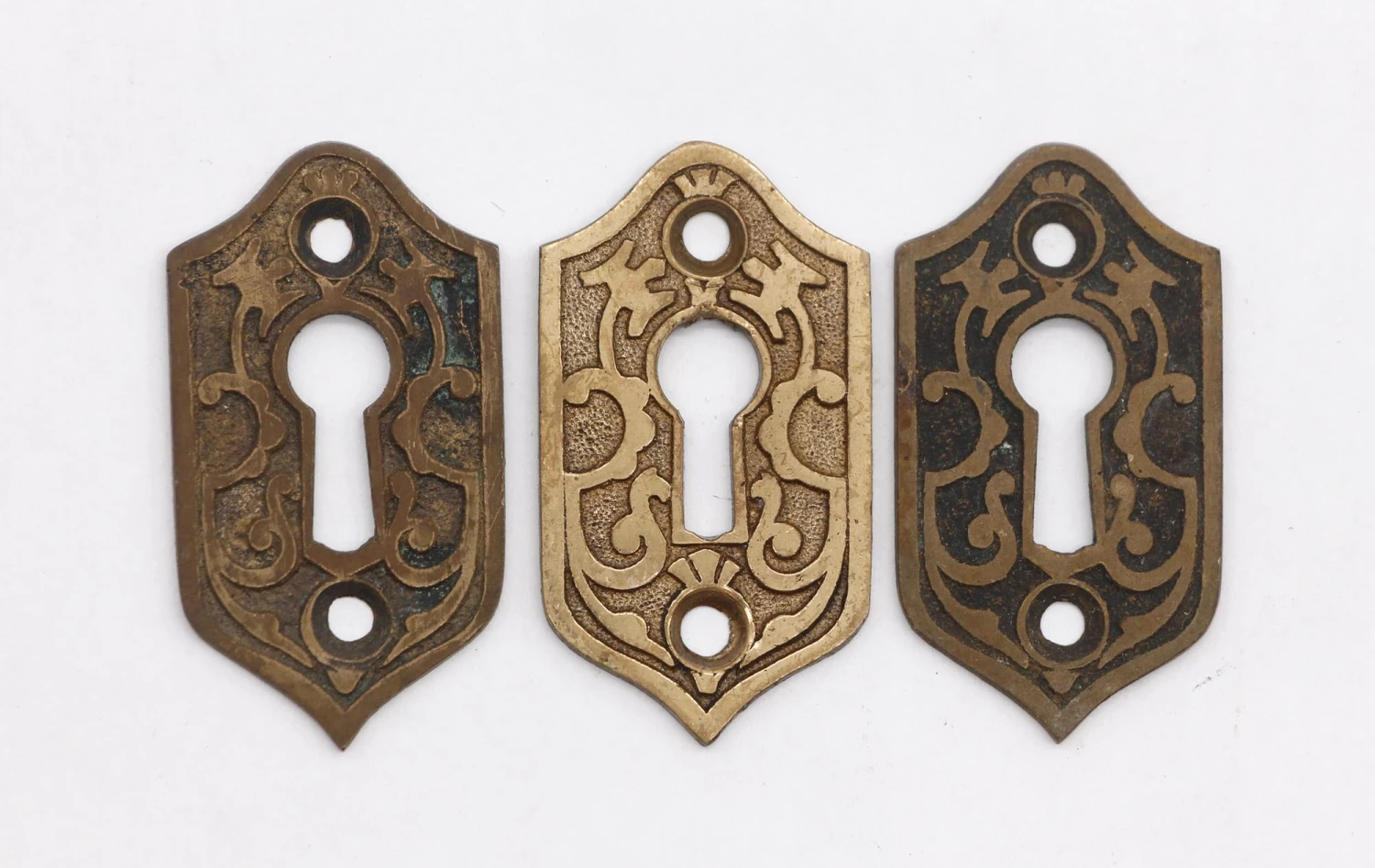 Victorian style antique bronze keyhole cover. Patinas vary. Please see the photos. Priced each.