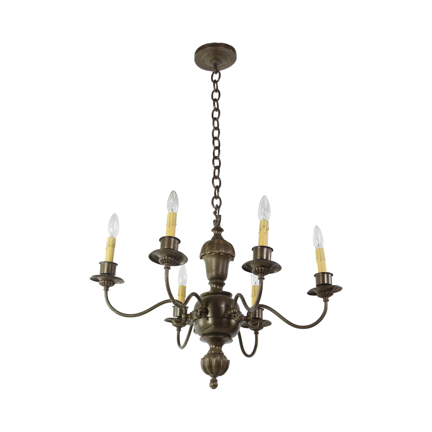 Antique Brass 6 Arm Fluted Georgian Chandelier