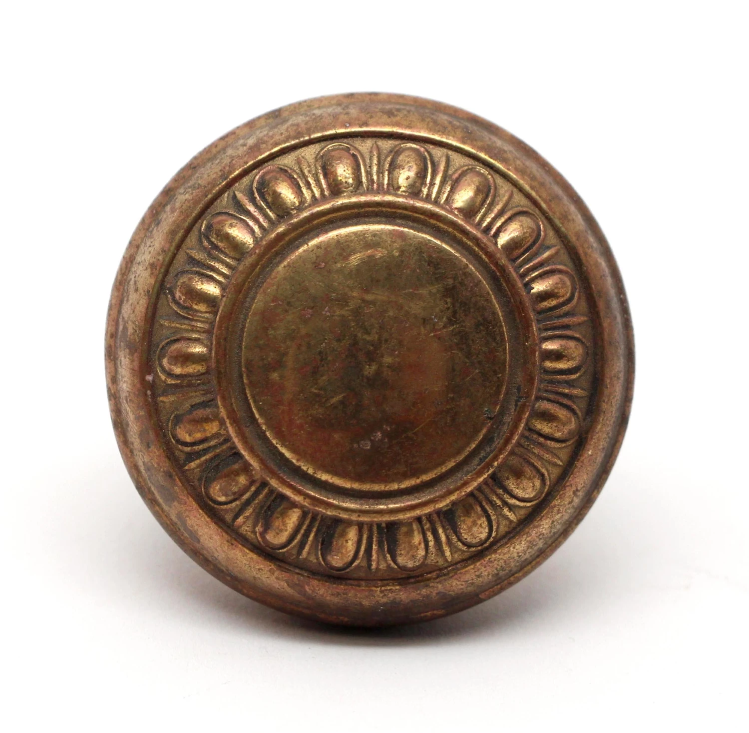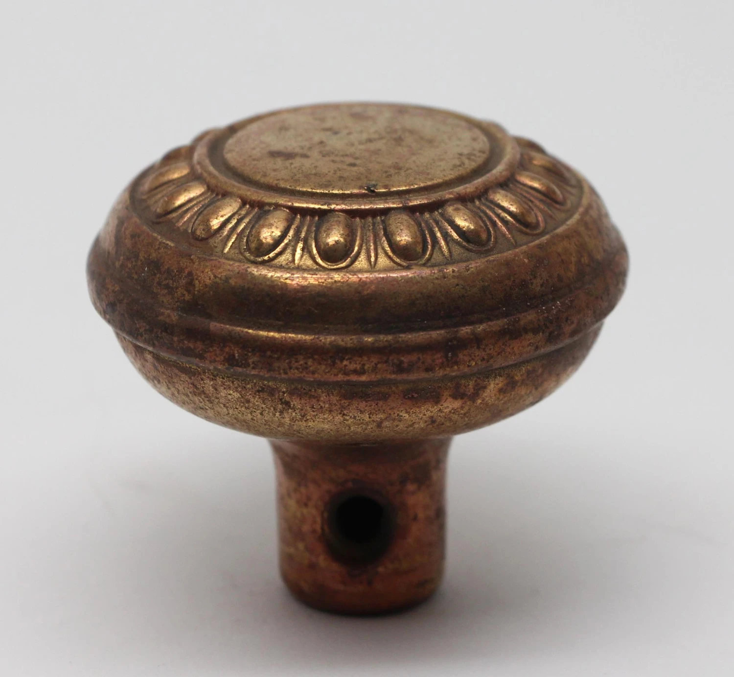 Brass concentric egg and dart style doorknob. This knob is part of the M-15550 group. The manufacturer is unknown. Priced each as a single knob. Sets can be made at your request.