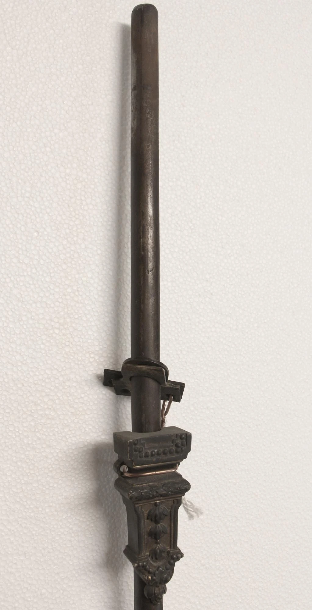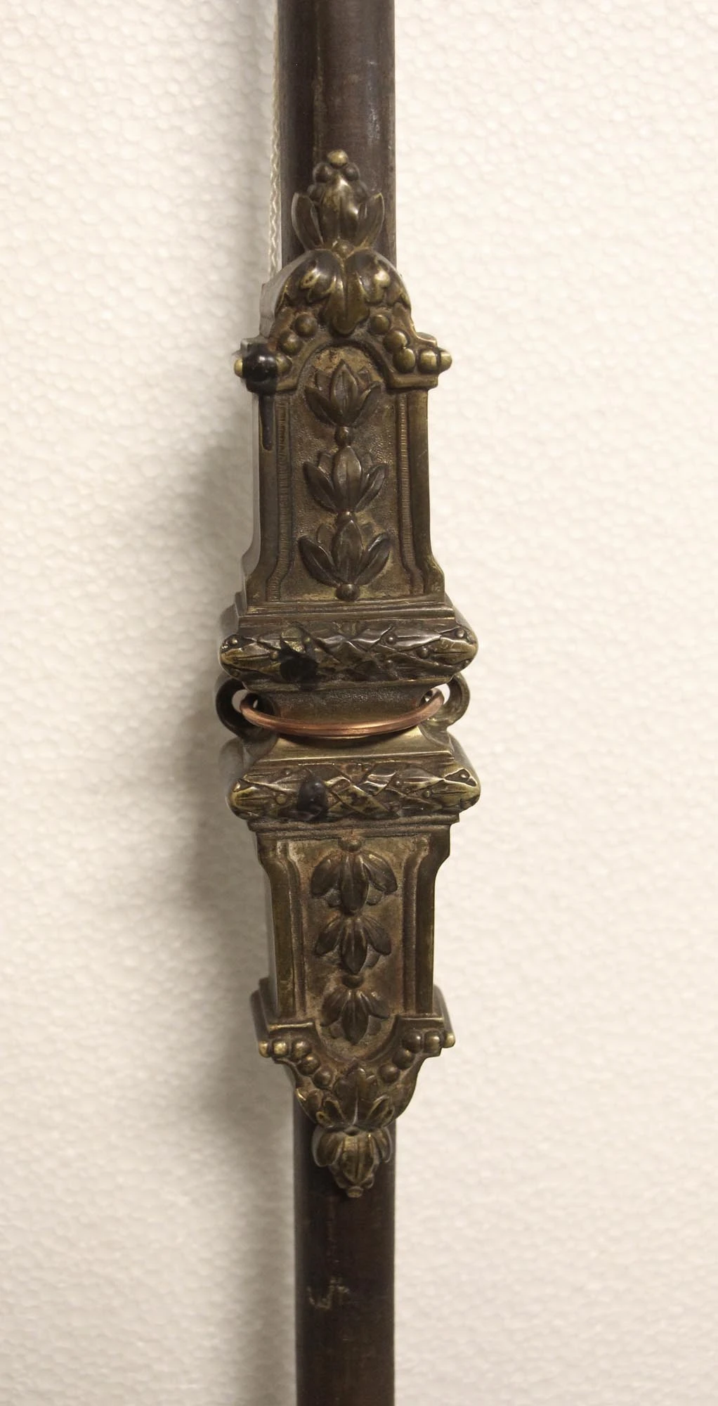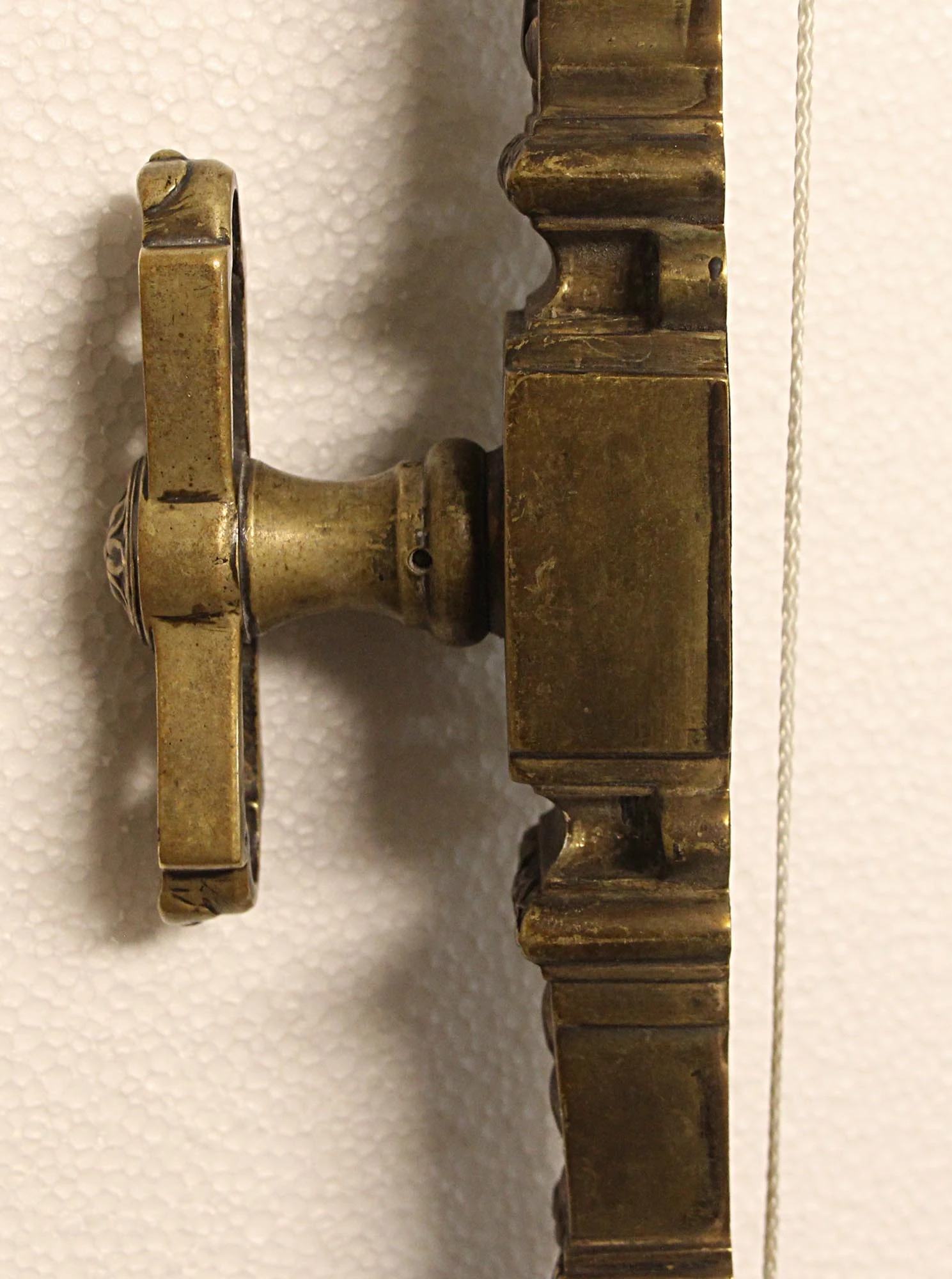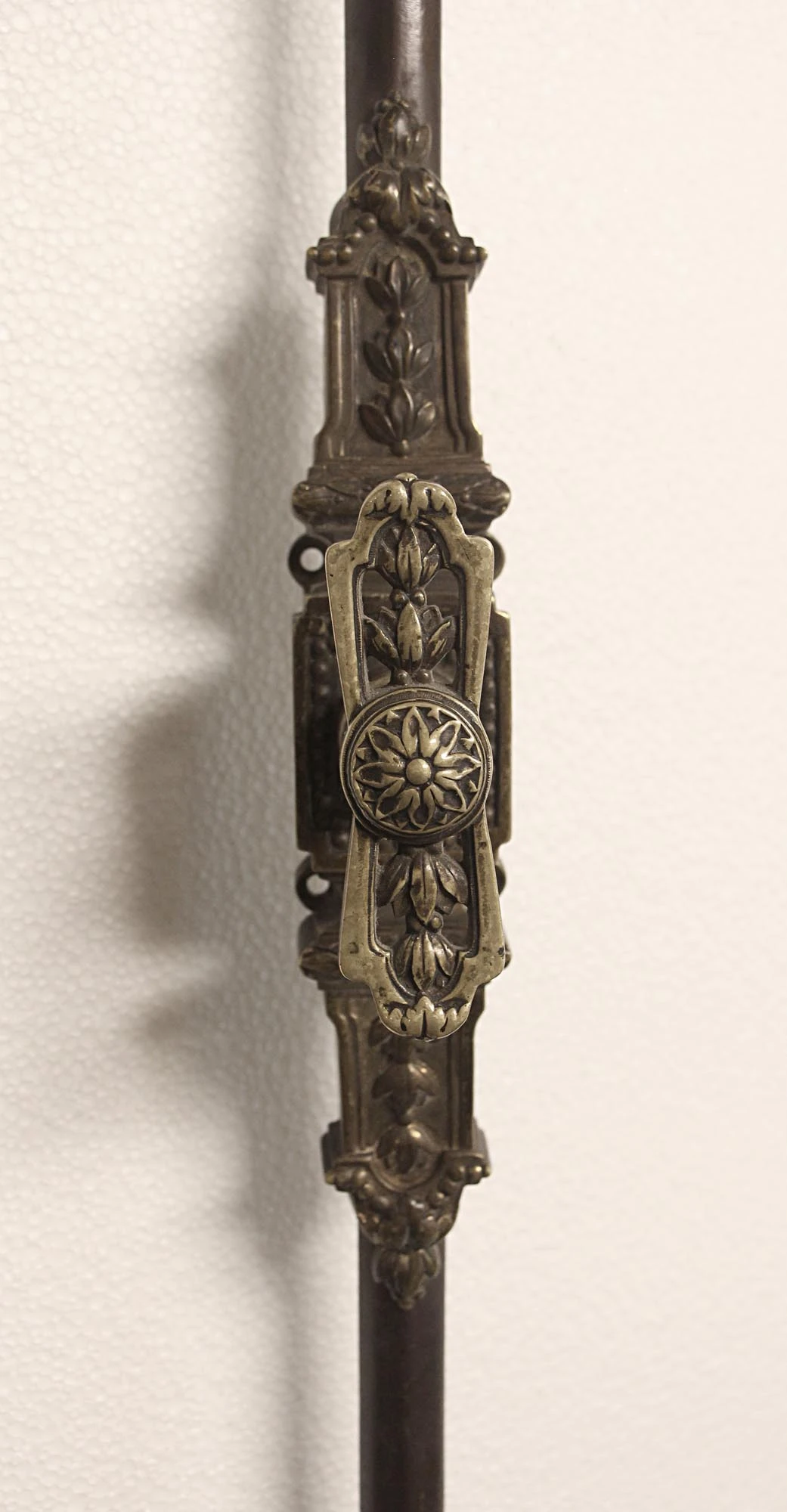 Steel cremone bolt with decorative brass details. One strike plate is different. Priced each.
