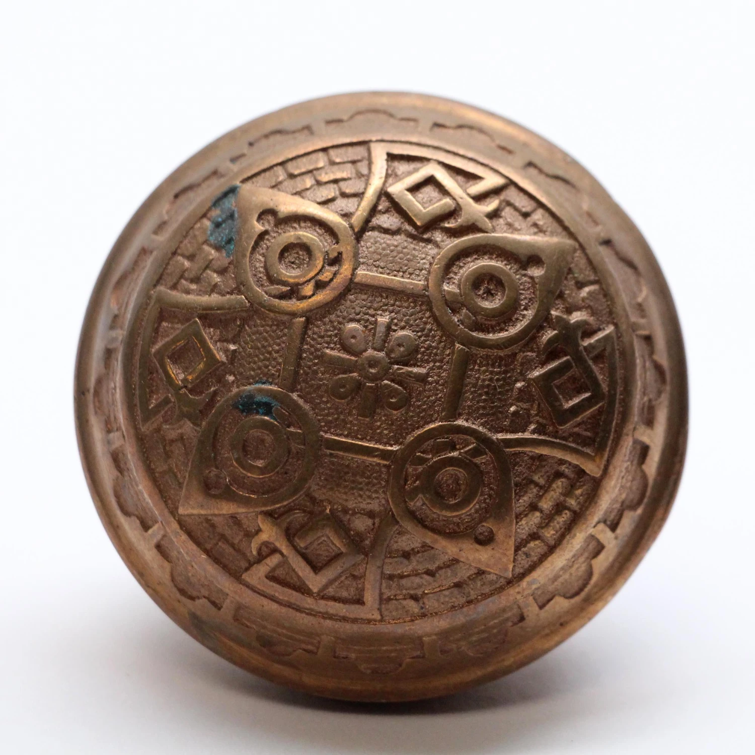 This Vernacular style four fold knob was made by Norwalk in the 1885 catalog. It is part of the H-22030 group. Please inquire about cleanup. Sold as one single knob.