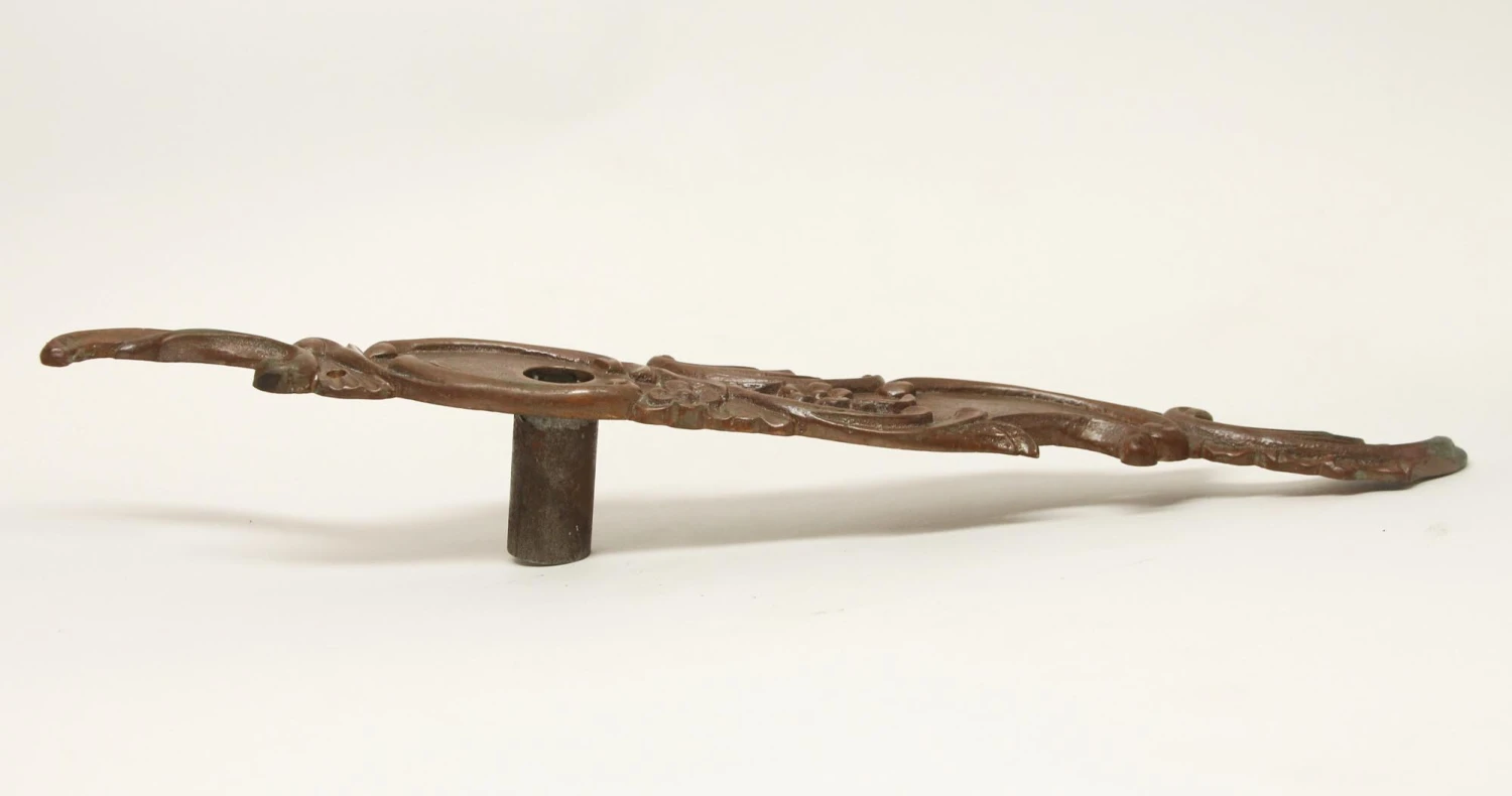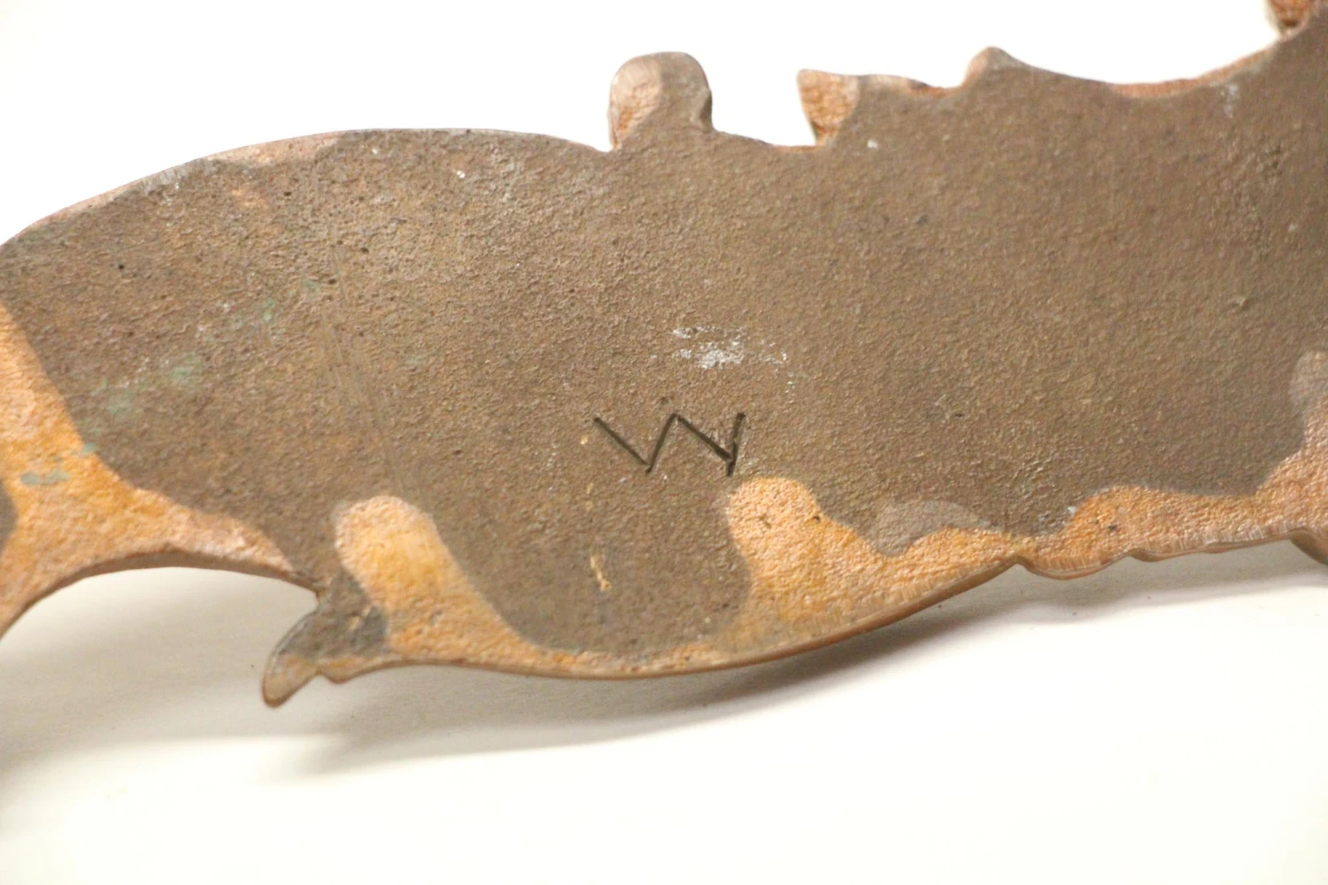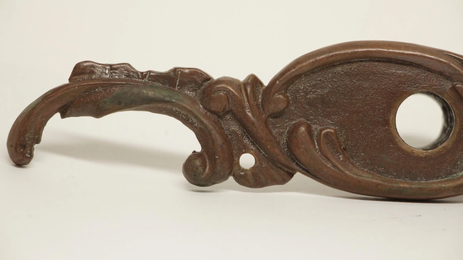 Decorative back plate with floral detail and a brown patina. Inscribed W on the back. Priced each.
