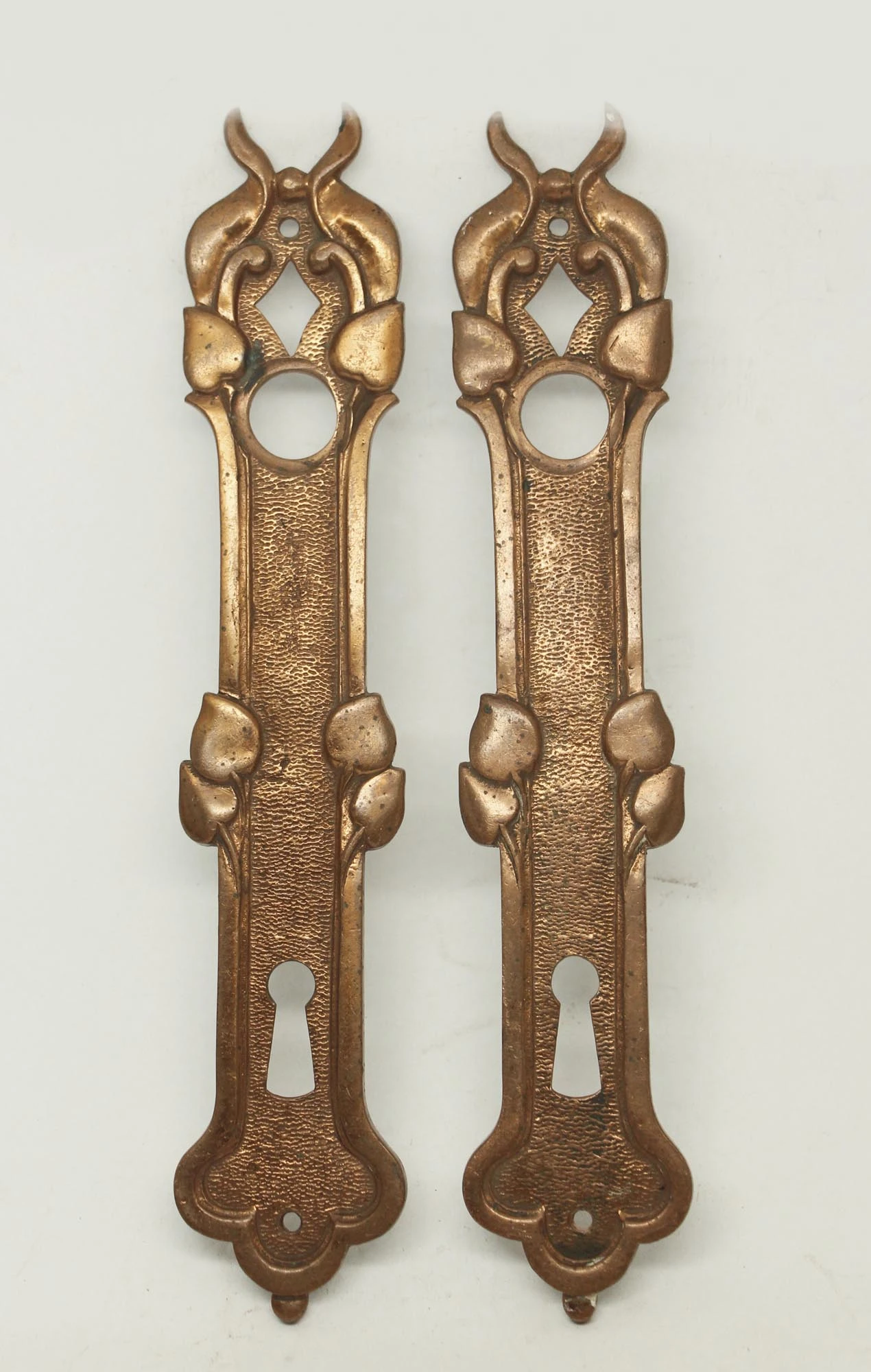 Copper toned French style bronze back plates with a keyhole. Priced as a pair.