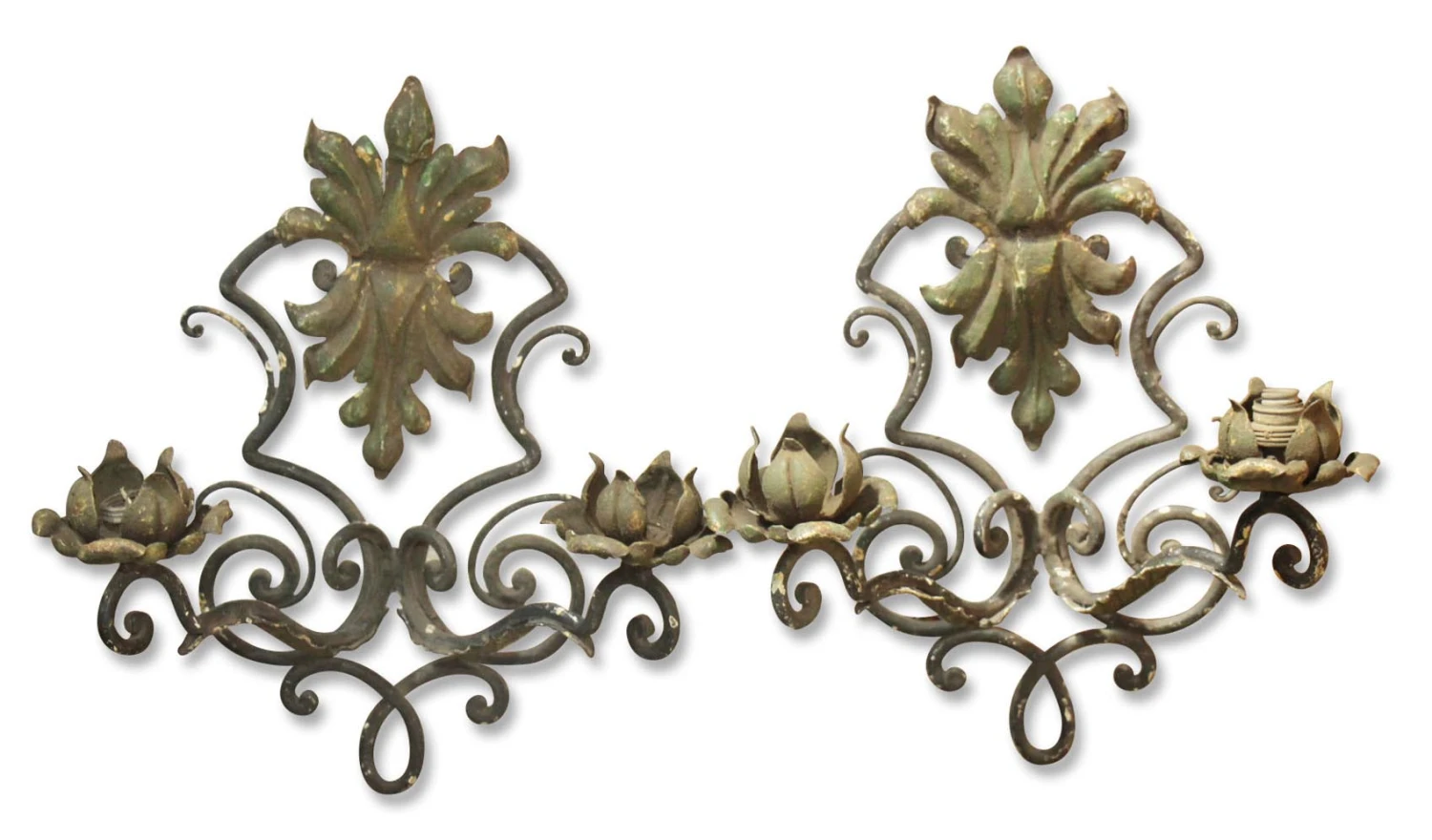 Be the first to review “Antique French Wrought Iron 2 Arm Wall Sconces” Cancel reply
