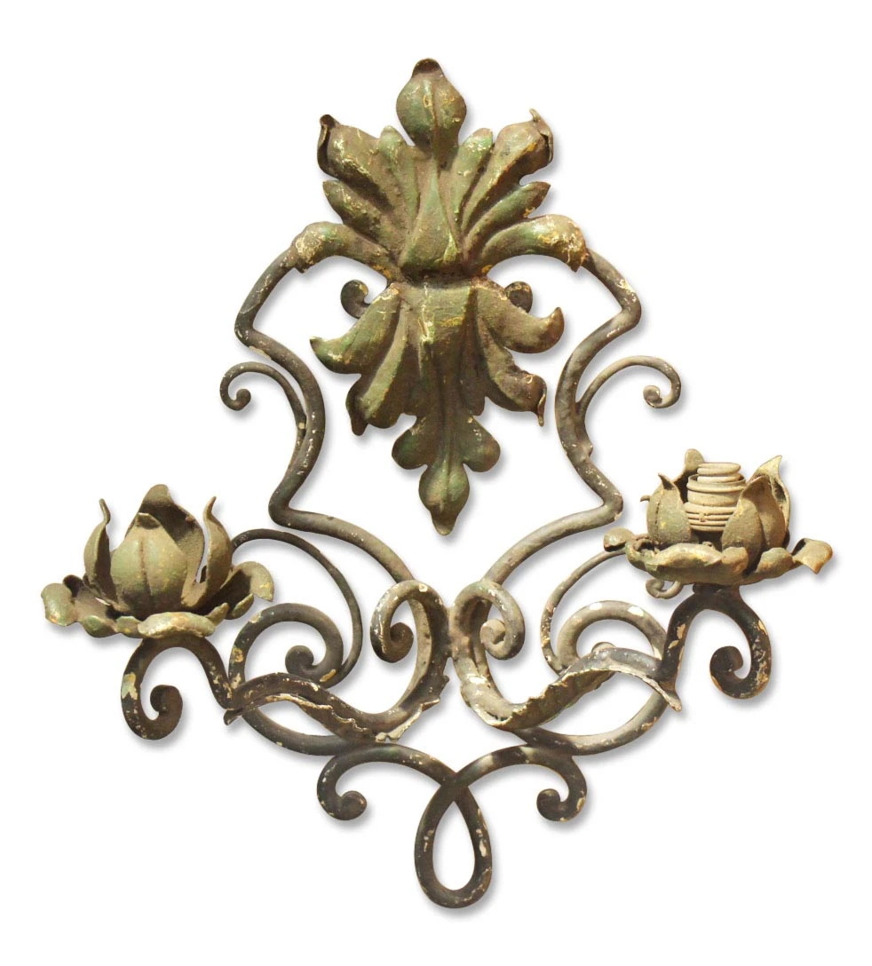 Antique French Wrought Iron 2 Arm Wall Sconces