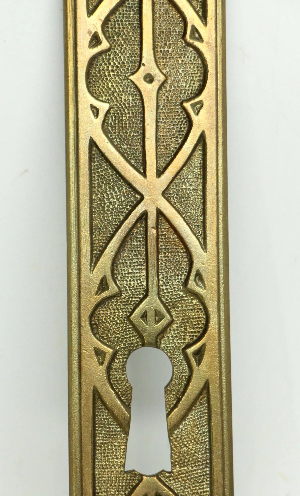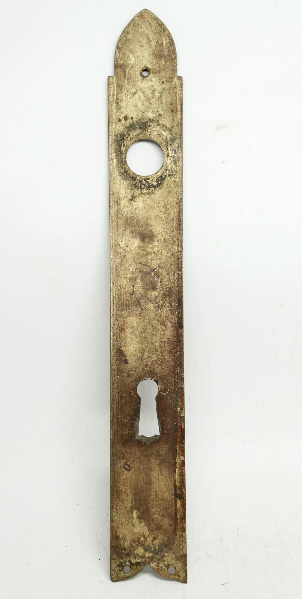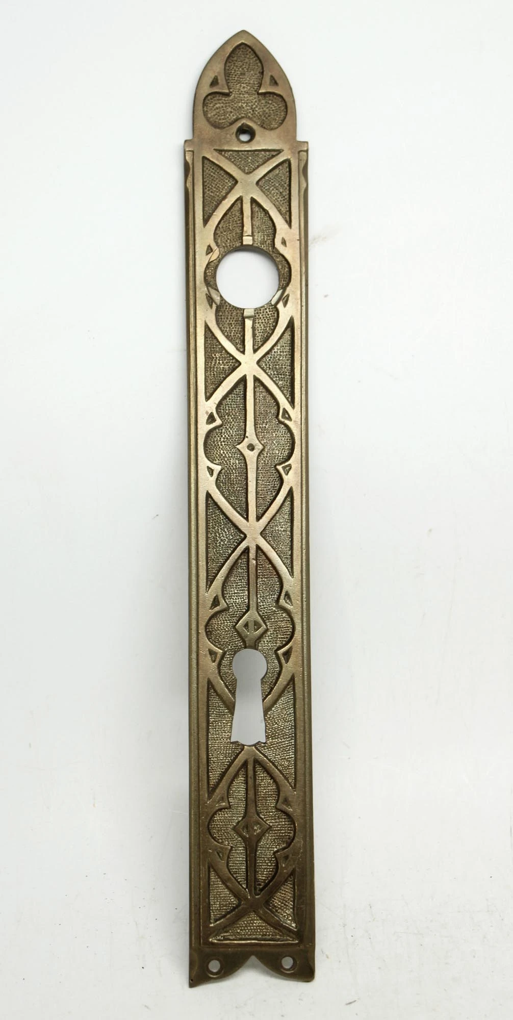 Pairs of thin Gothic door plates with keyhole. Priced as a pair. These back plates can be paired with 16Bel7007.