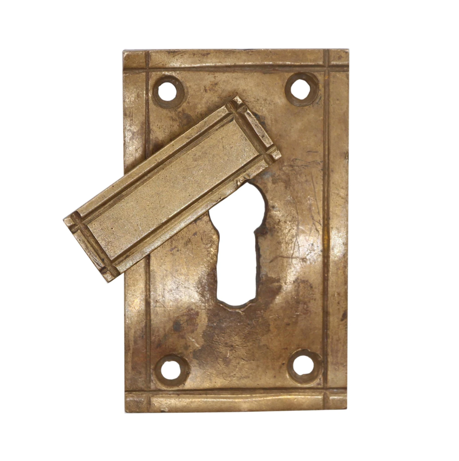 Rectangular brass keyhole with draft cover. This is bent. One available.