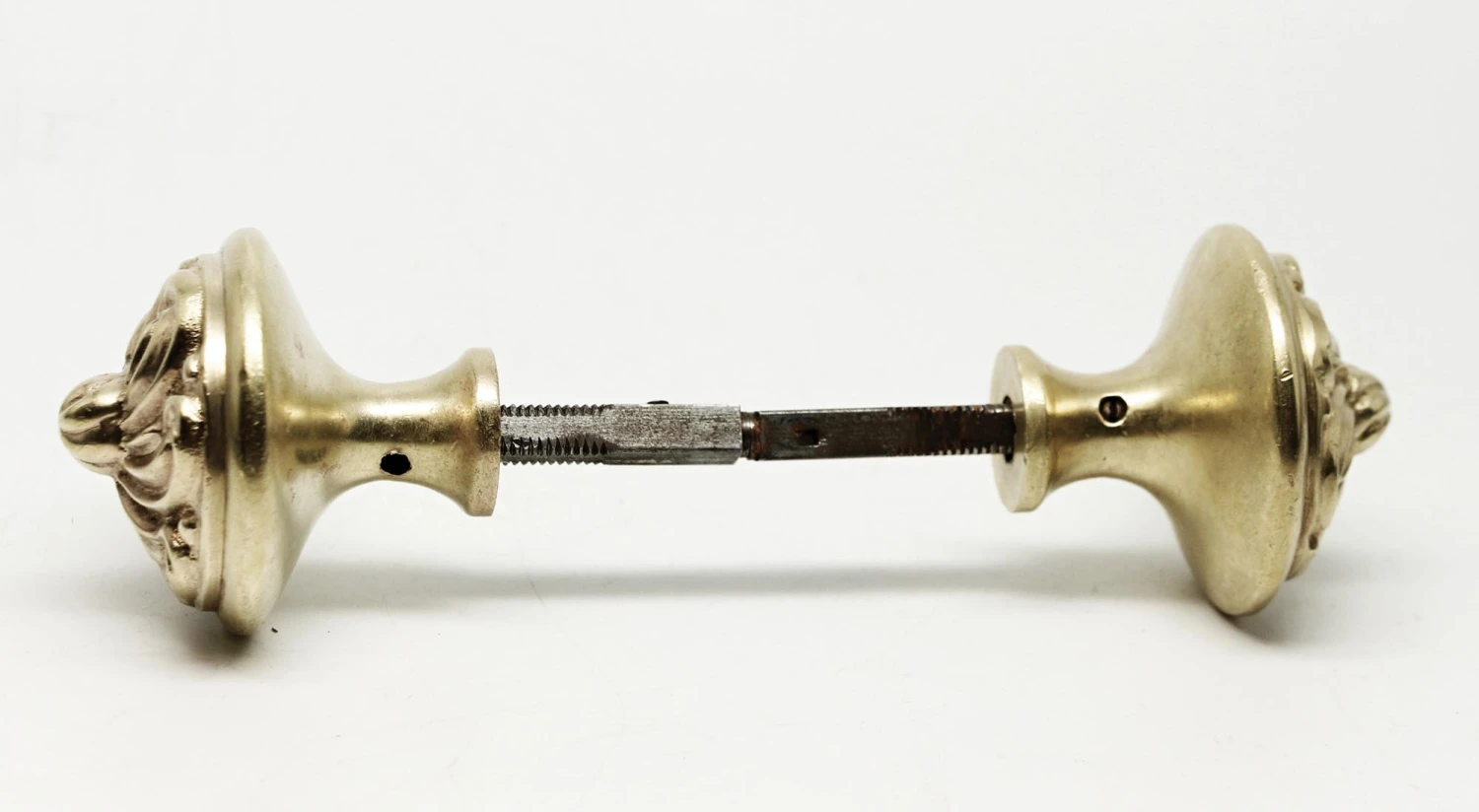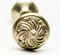 Manufacturer is unknown. In the 1900 catalog. Art Nouveau style. Part of the E-15800 group. Priced per pair of knobs with spindle.