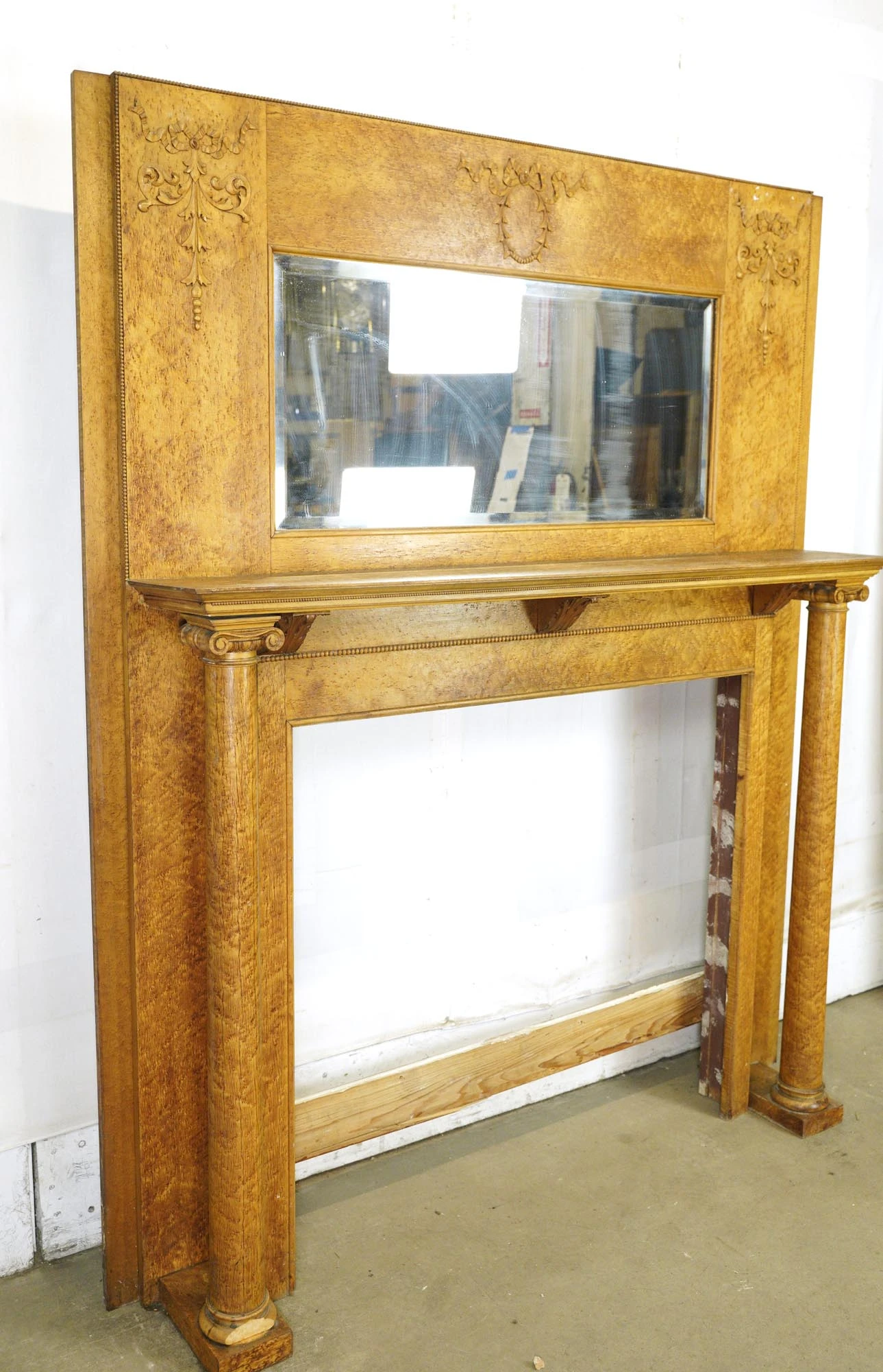 Antique Victorian Birds Eye Maple Mantel With Beveled Mirror