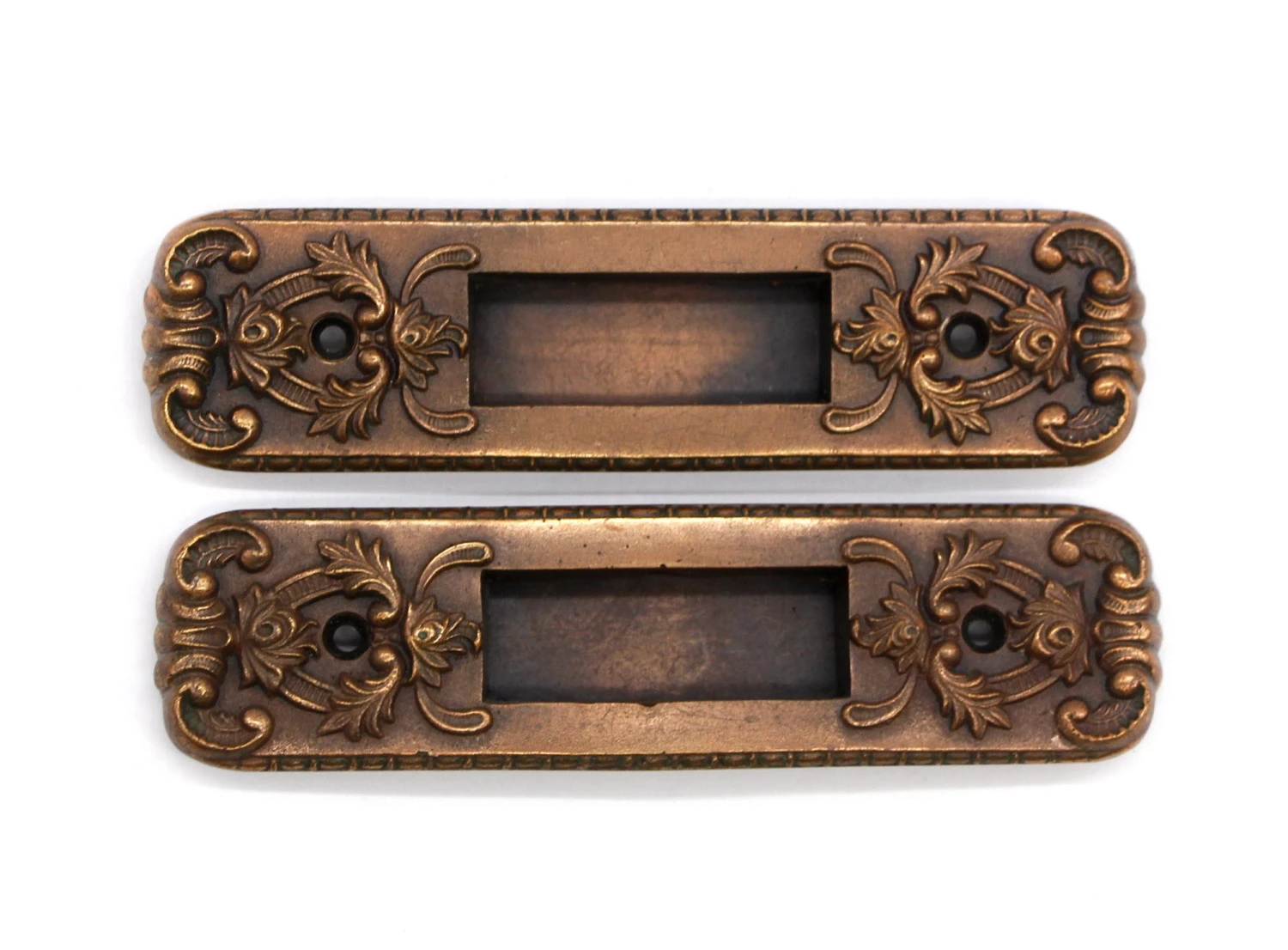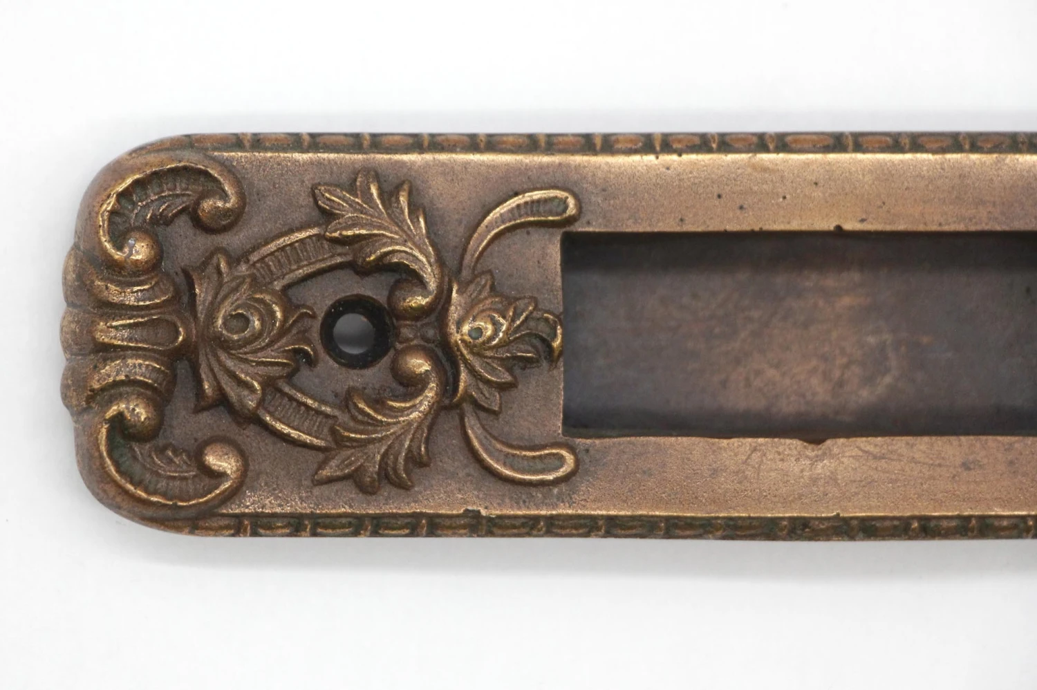 This antique bronze recessed window sash lift reflects the intricate details and ornate aesthetics typical of the Victorian era. This sash lift combines both functionality and old charm, making it an ideal addition to your windows with a touch of historical elegance. They are in good antique condition. Priced each.