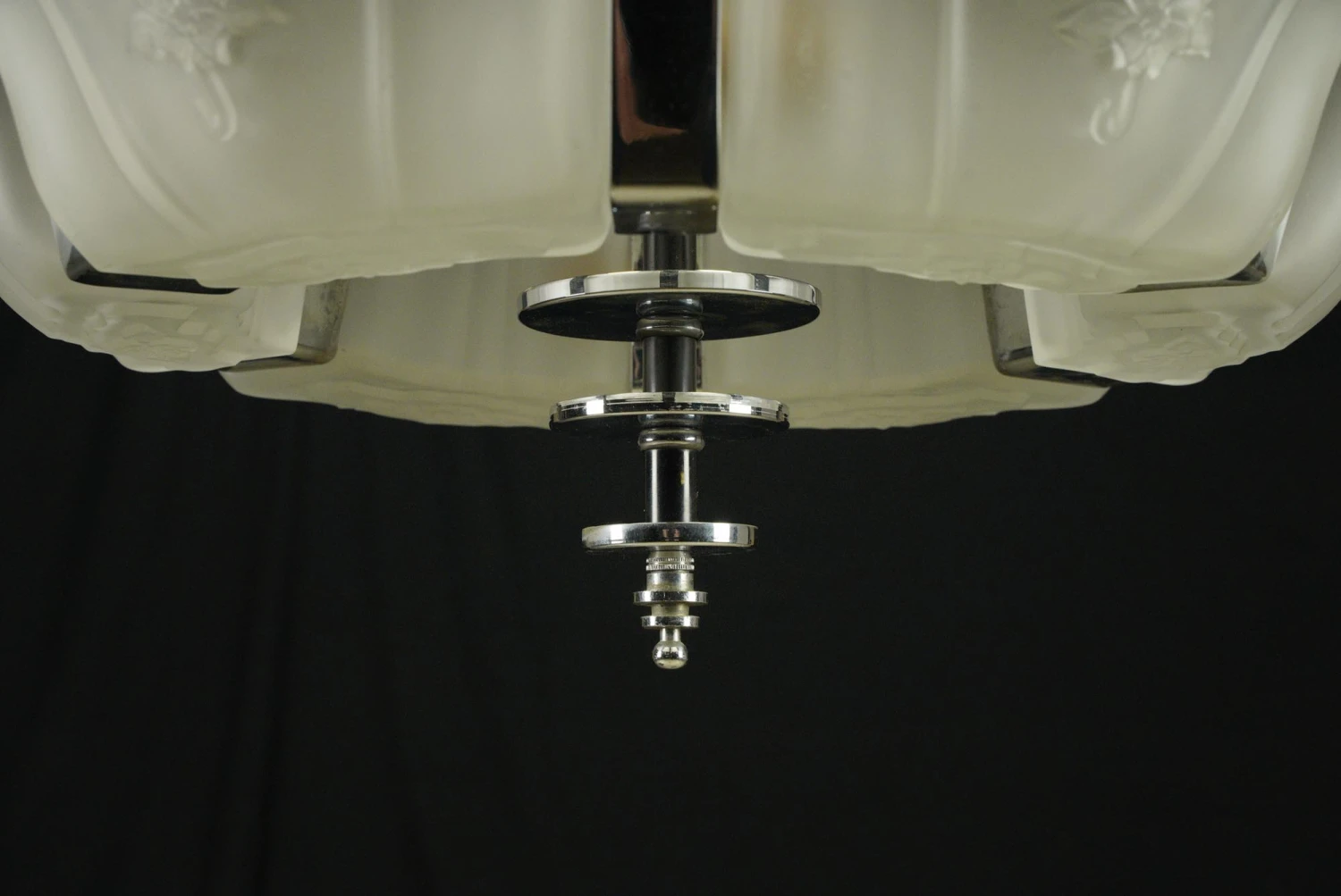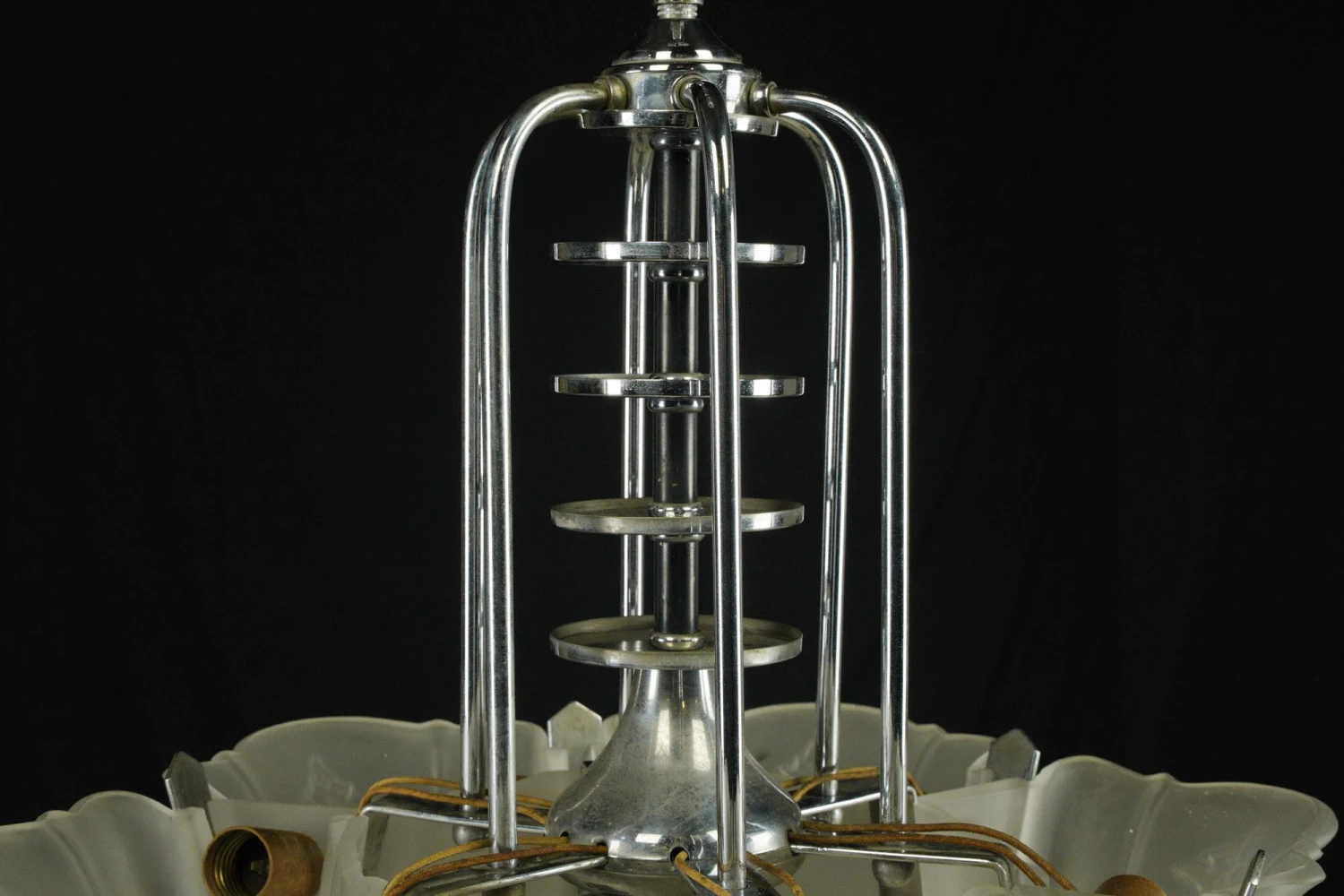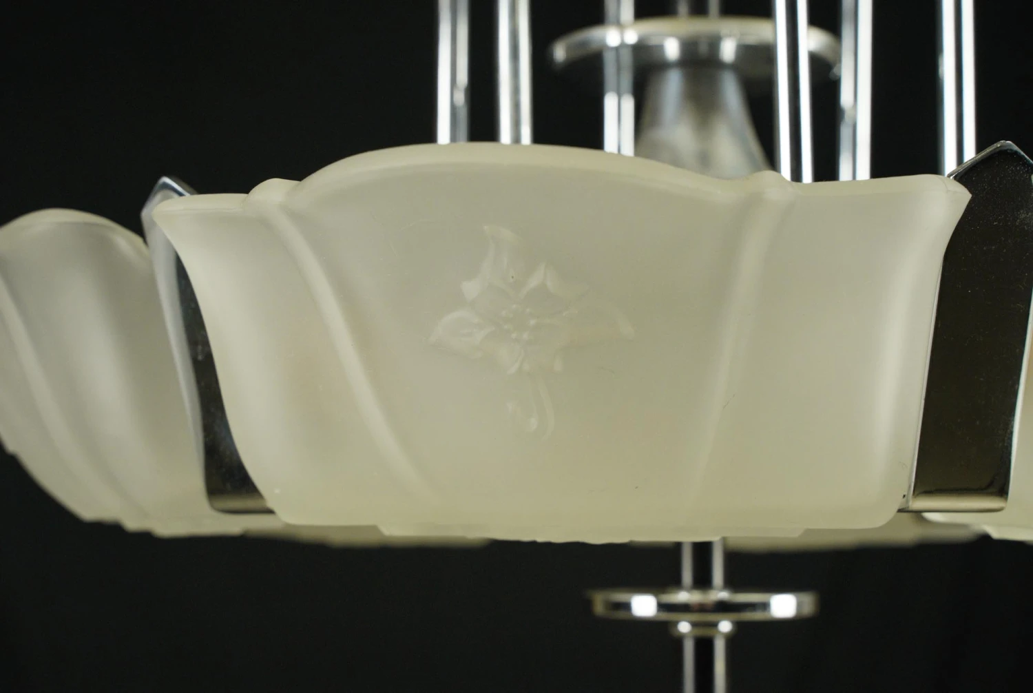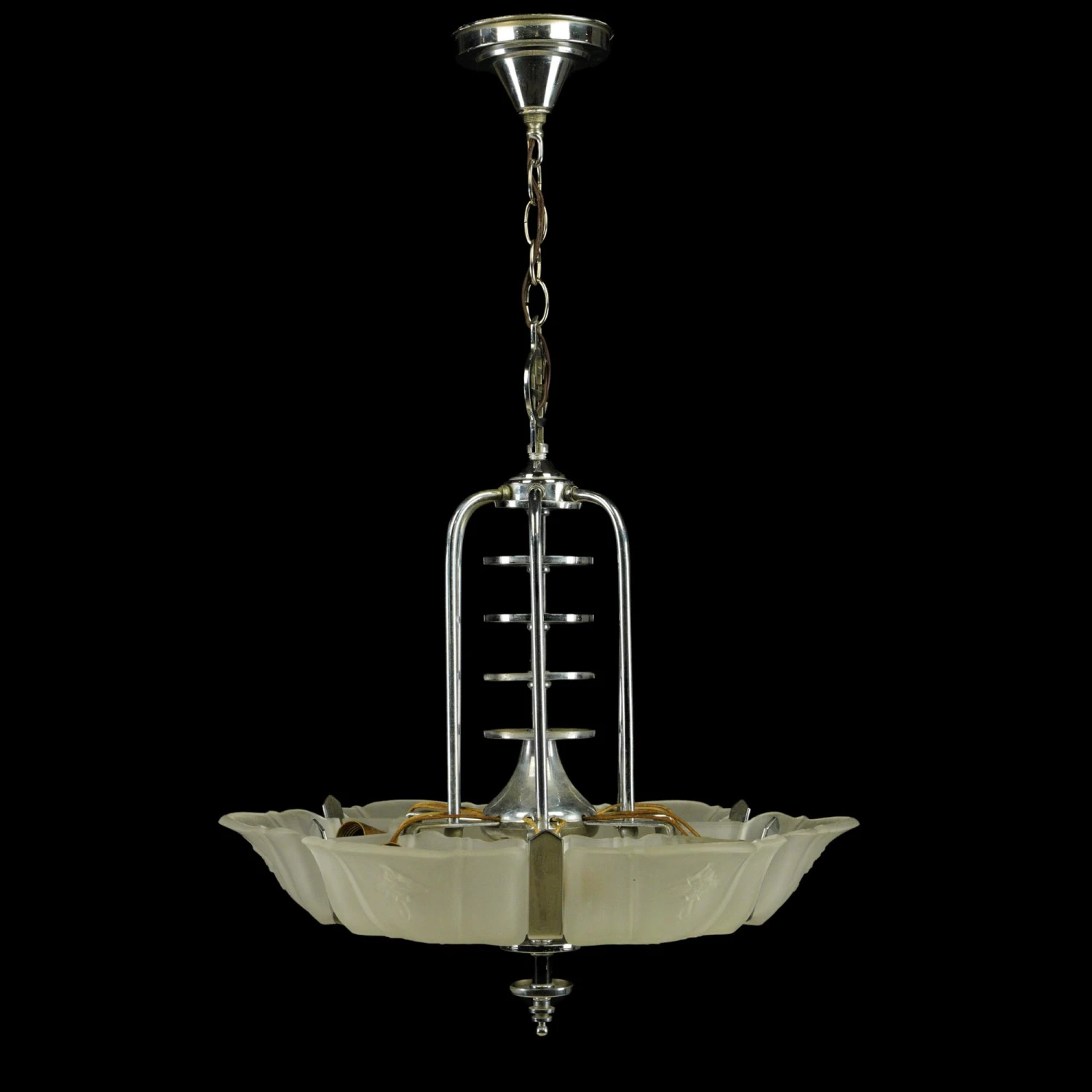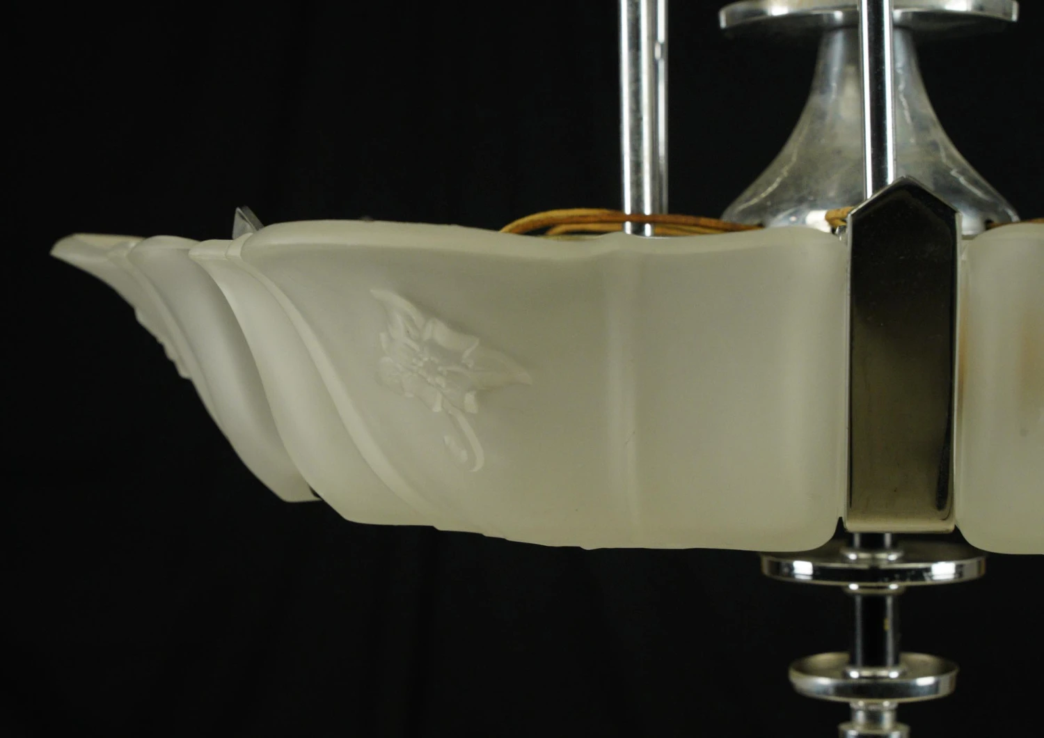 Art Deco Glass Slip Shade 6 Light Chandelier