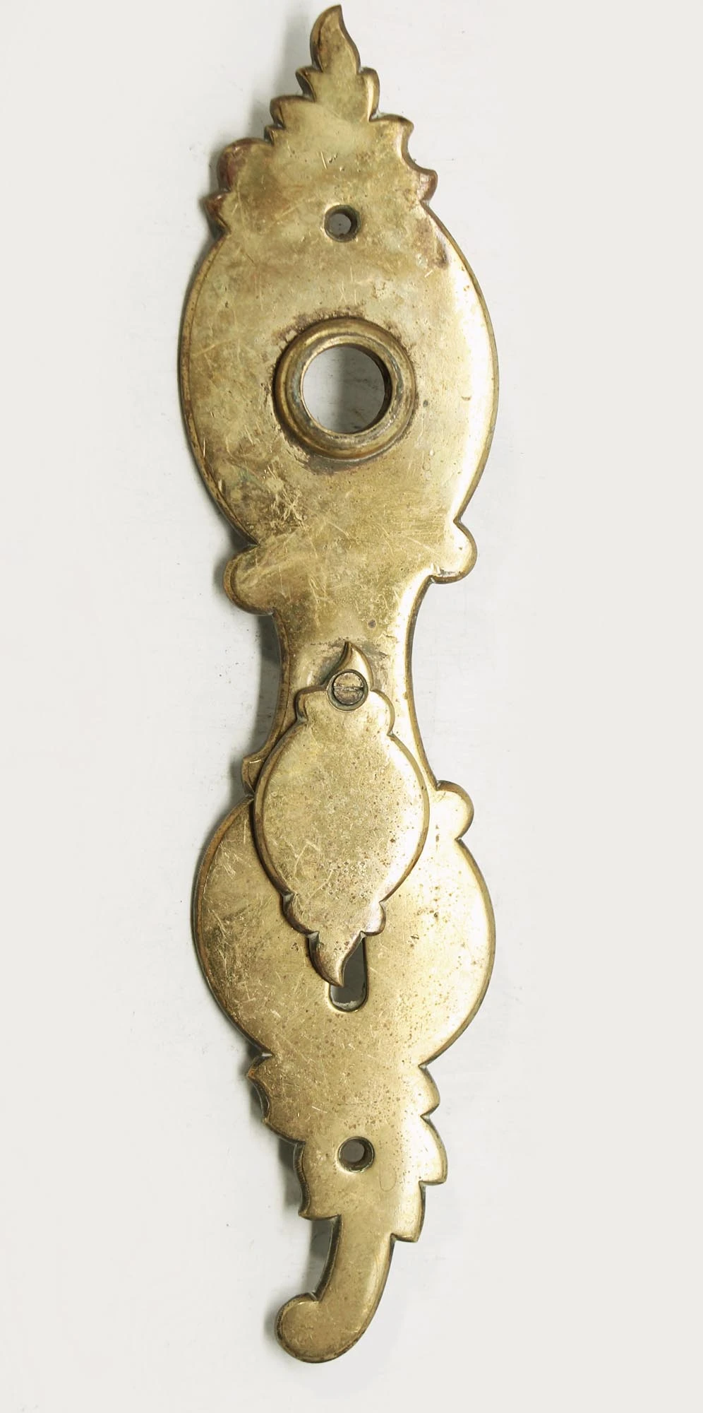 Includes a keyhole cover. This simple brass plate was imported from Europe. Sold as one single plate.