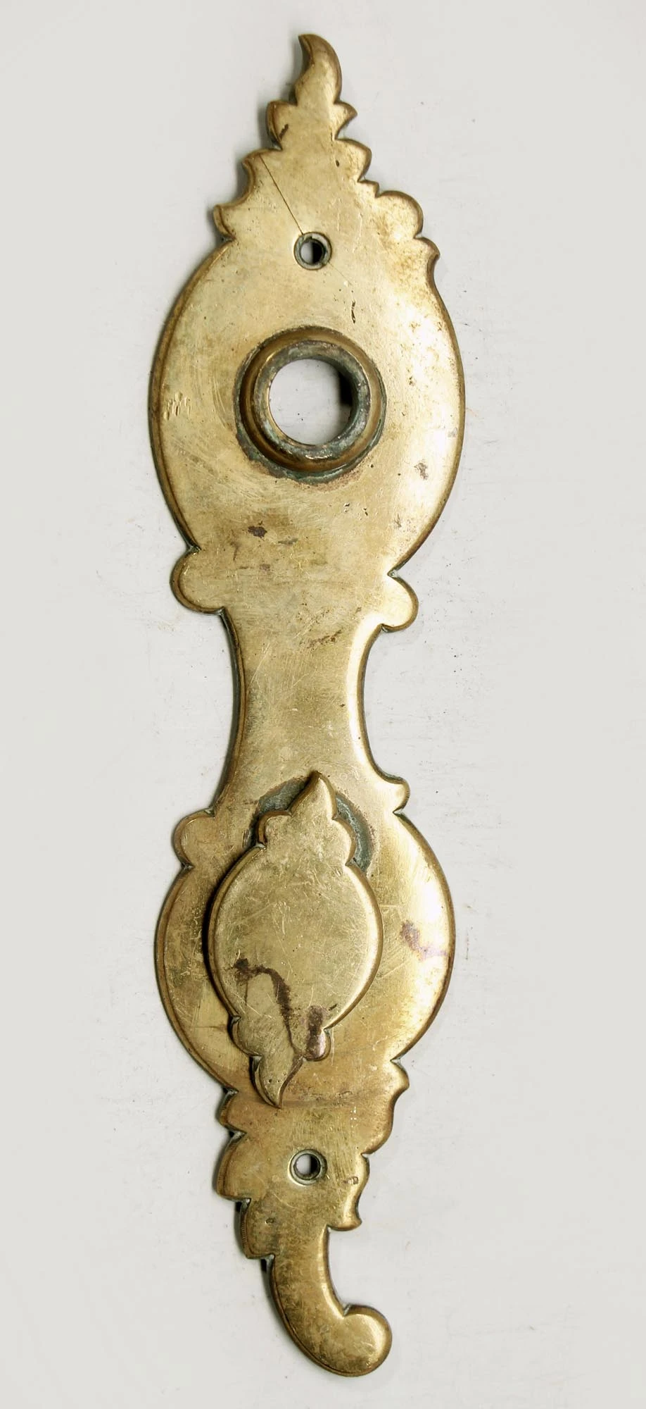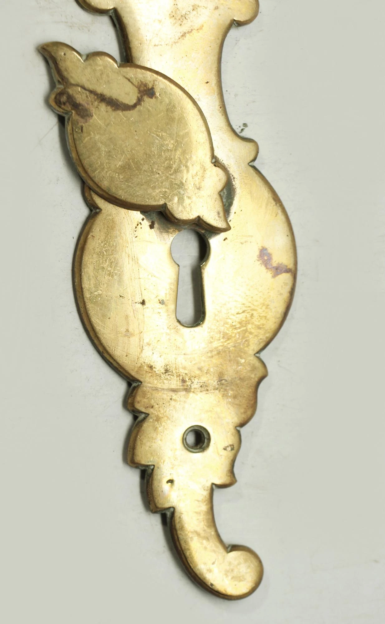 Brass back plate with keyhole and an attached keyhole cover. These are imported from Europe. Priced each.