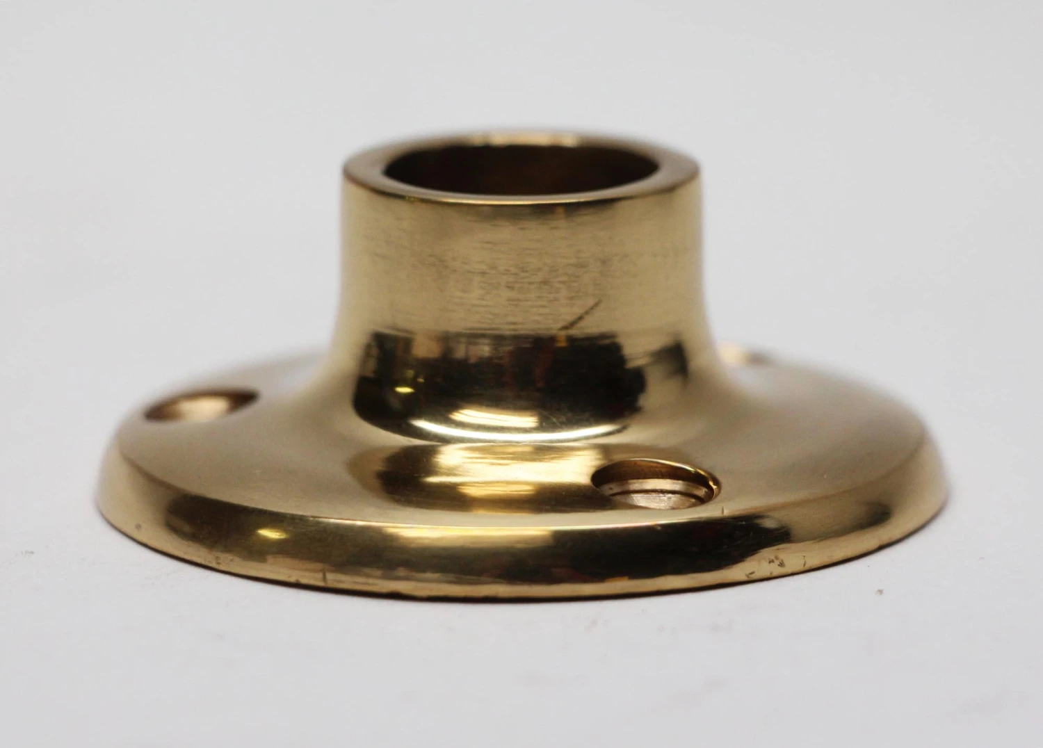 Quality reproduction polished brass rosette with a deep neck. Priced each.
