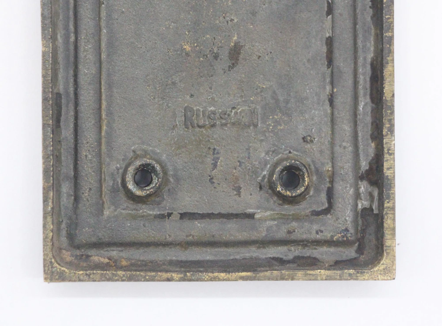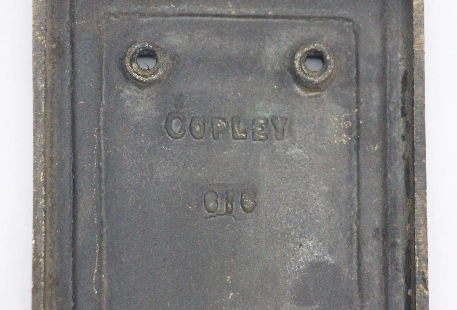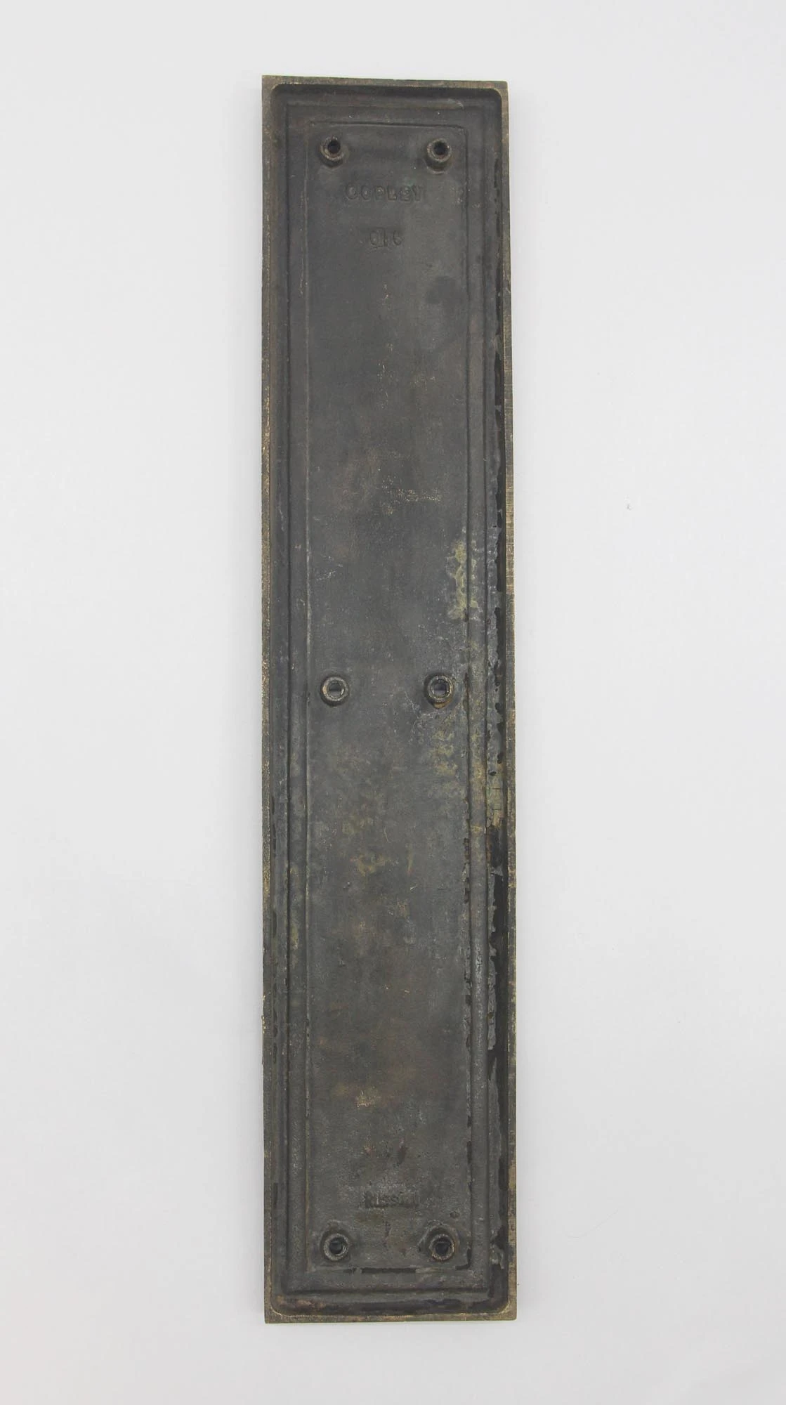 This grand Russwin signed push plate is made of cast bronze with a picture frame border. It is inscribed Copley on the back. One available.