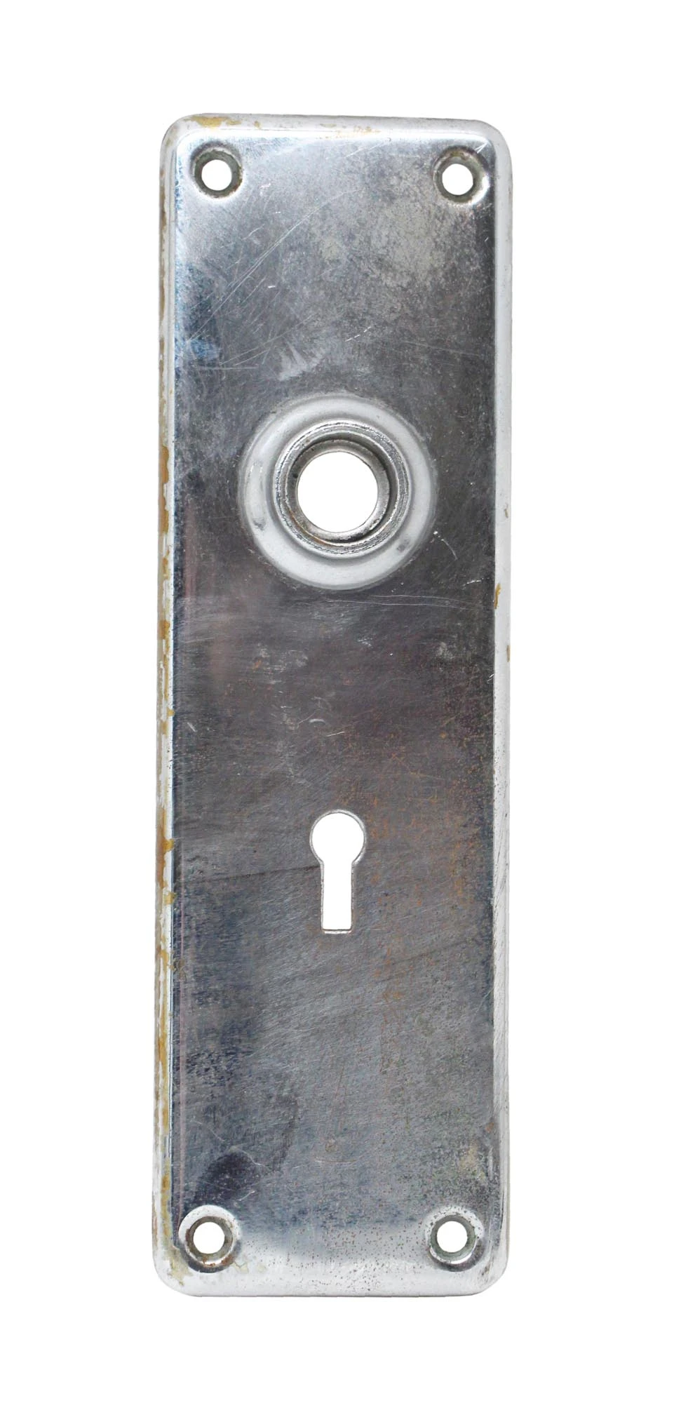 Brass back plate with a keyhole and a chrome finish. Priced each.