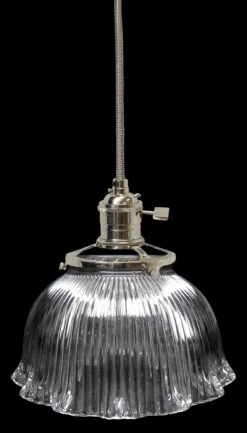 Custom 1920s Holophane Clear Glass 7.25 In. Pendant Light