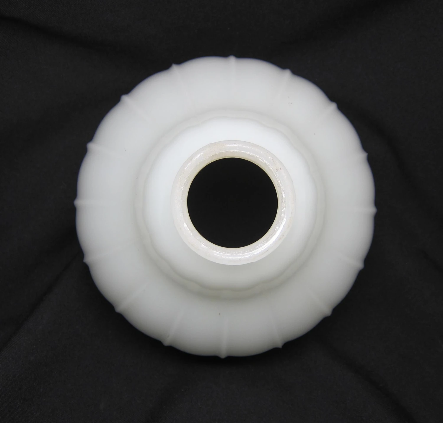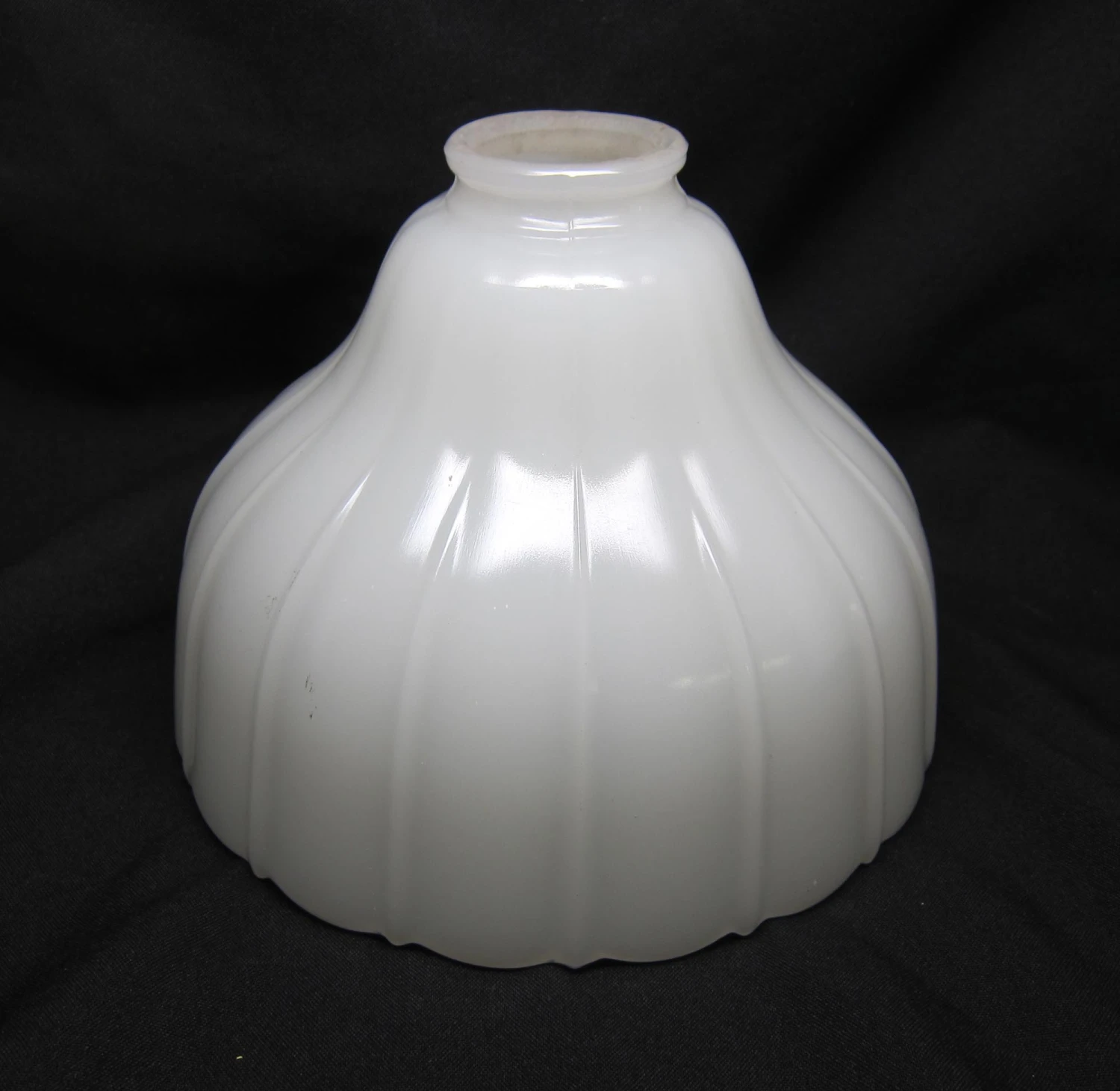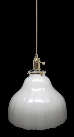 1920s fluted milk glass shade paired with a newly wired cloth cord fixture in polished nickel. Choose the fitter option you prefer. Please specify the overall drop that is needed upon purchasing.