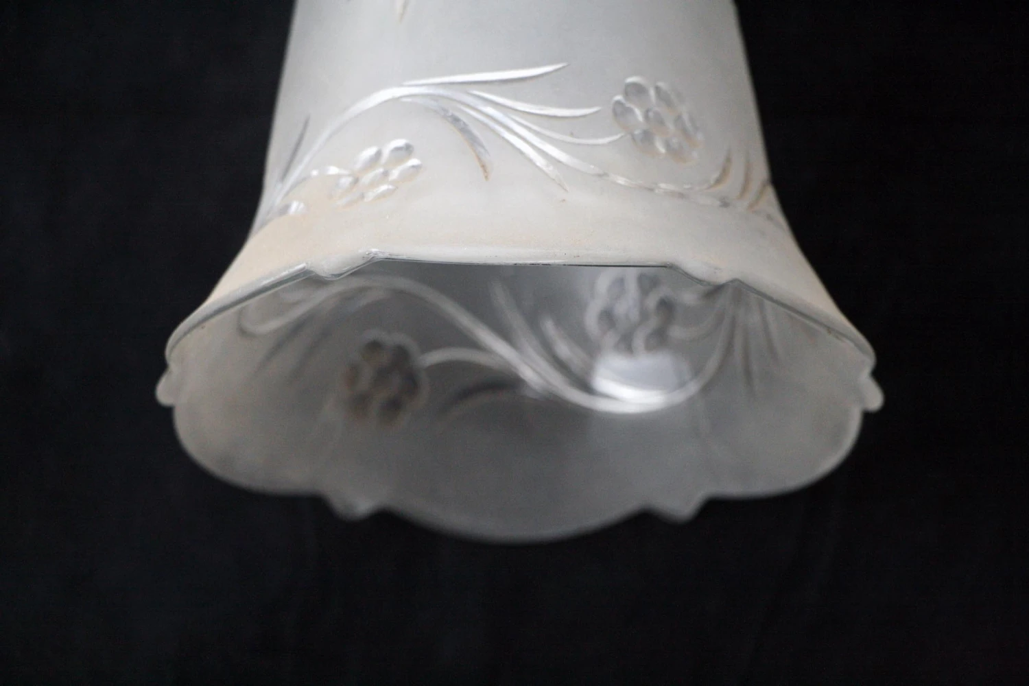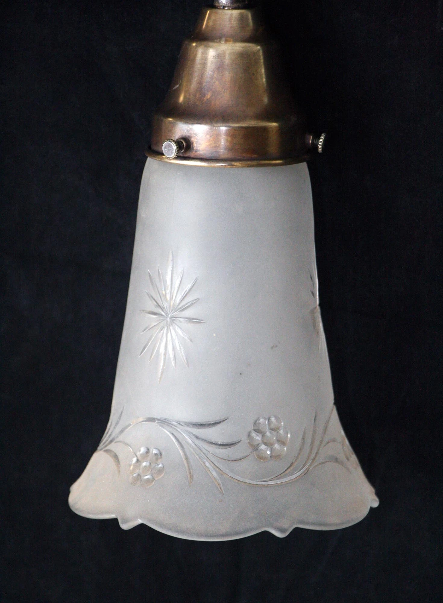 Vintage clear glass globe light with etched flowers. Pictured here with a newly wired cloth cord fixture in polished nickel. Choose the fitter option you prefer. Please specify the overall drop that is needed upon purchasing.