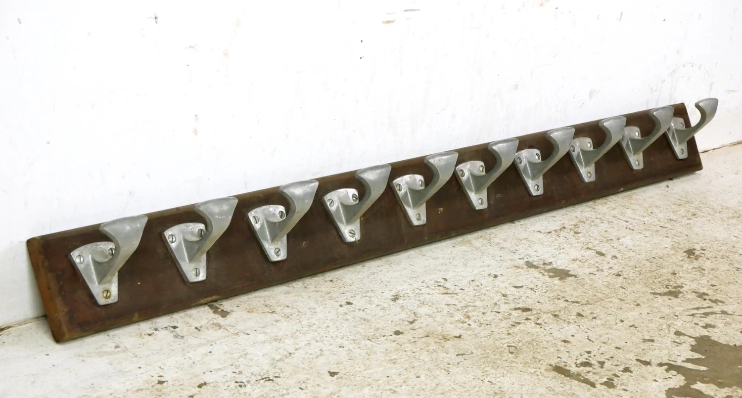 European 50 In. French Aluminum 10 Hook Wood Coat Rack