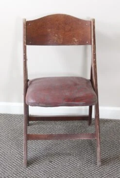 1940s Bentwood Back Folding Chair With Dark Red & Black Vinyl Cushions