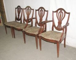 Vintage 58 In. Spade Carvings Medium Tone Oak Table With Shelf