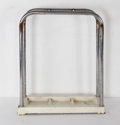European Chromed Steel & White Cast Iron Base Umbrella Holder
