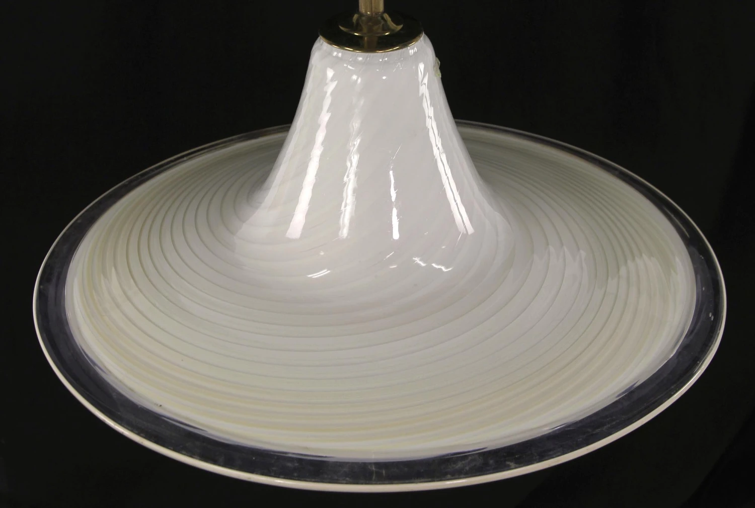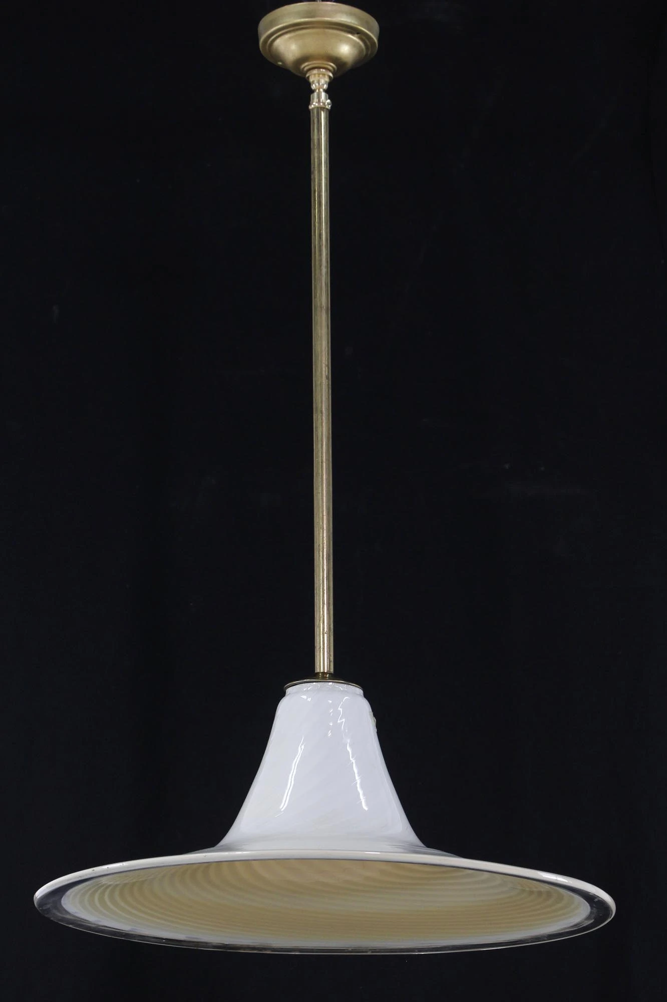 Hand blown beige swirl Vetri Murano glass pendant light. The shade can be fitted with either a chain or pole in brass or nickel to the customer’s specifications. The price includes restoration.