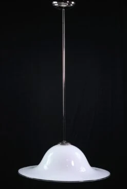 Large hand blown white Murano glass shade with a black rim mounted on a nickel pole. The glass was hand blown in Italy. The price includes restoration. Please specify the overall drop that is needed upon purchasing.