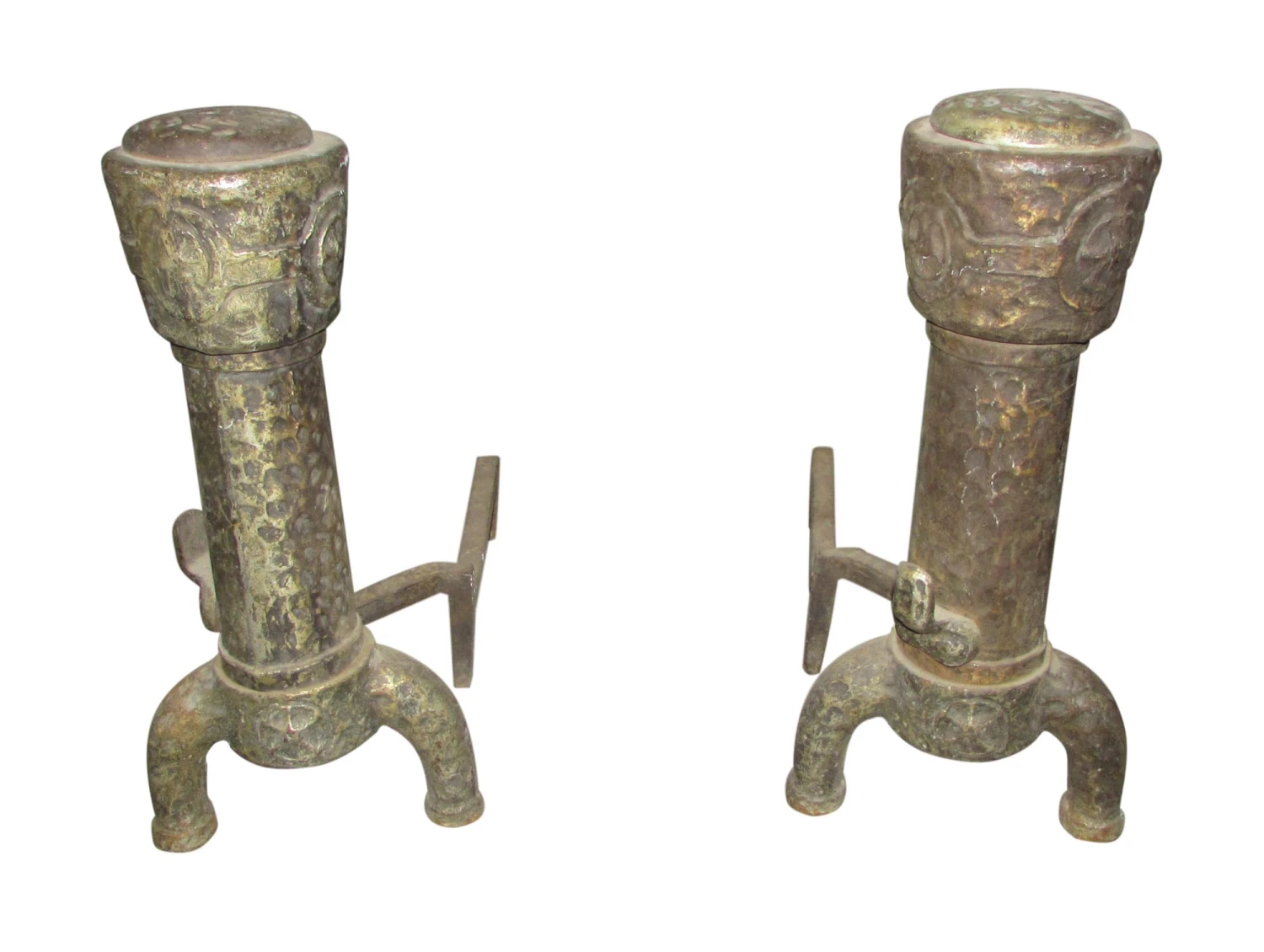 Hand Pounded Wrought Iron Andirons