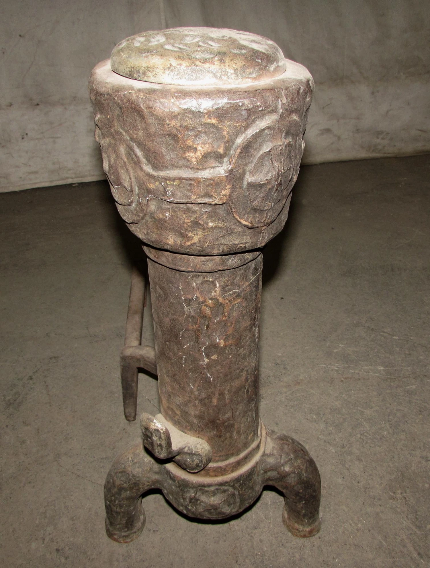 Stout and unusual pair of andirons from the early 1900s.