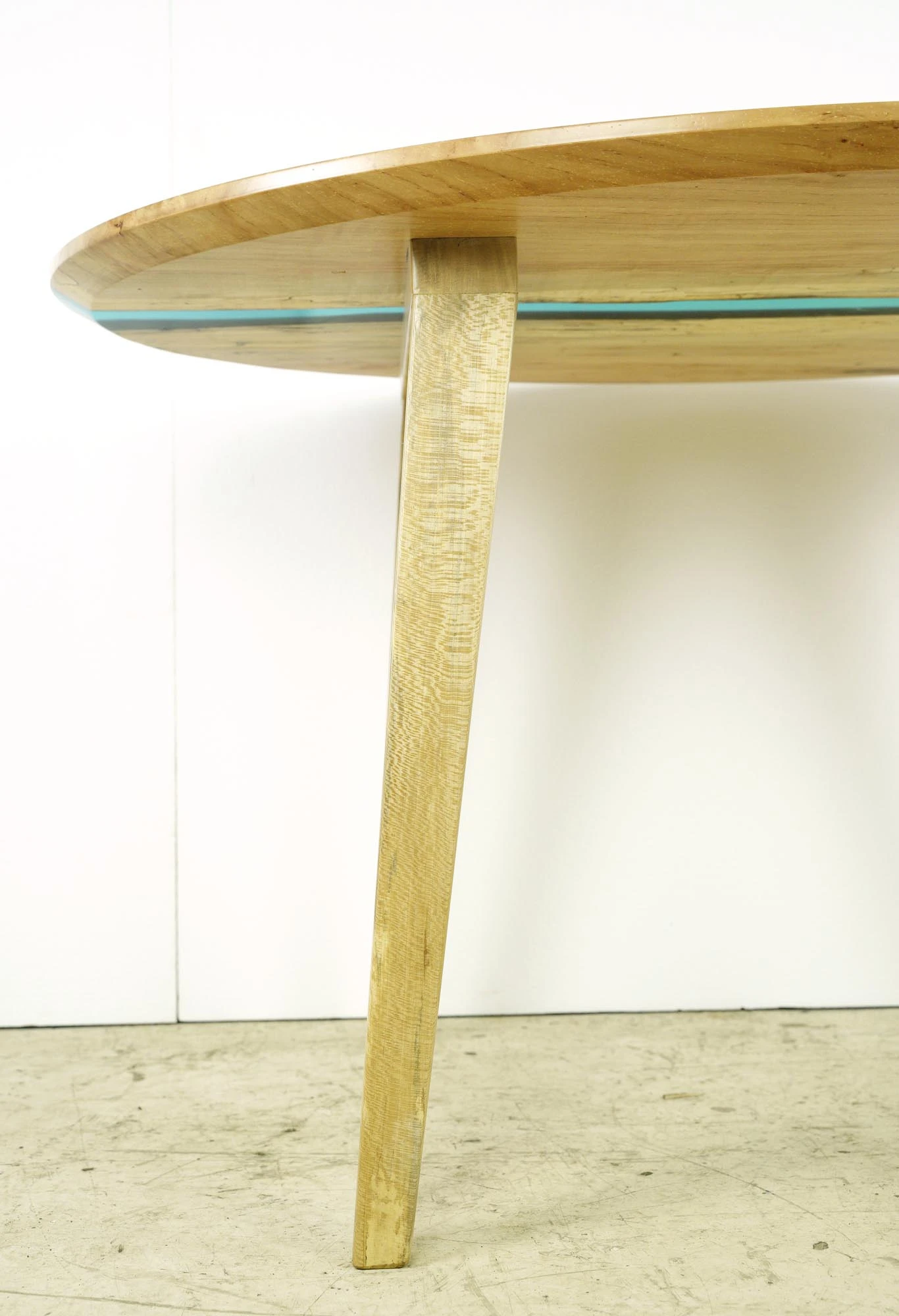 Handcrafted 4.5 Ft. Natural Maple Blue Resin River Oval Dining Table