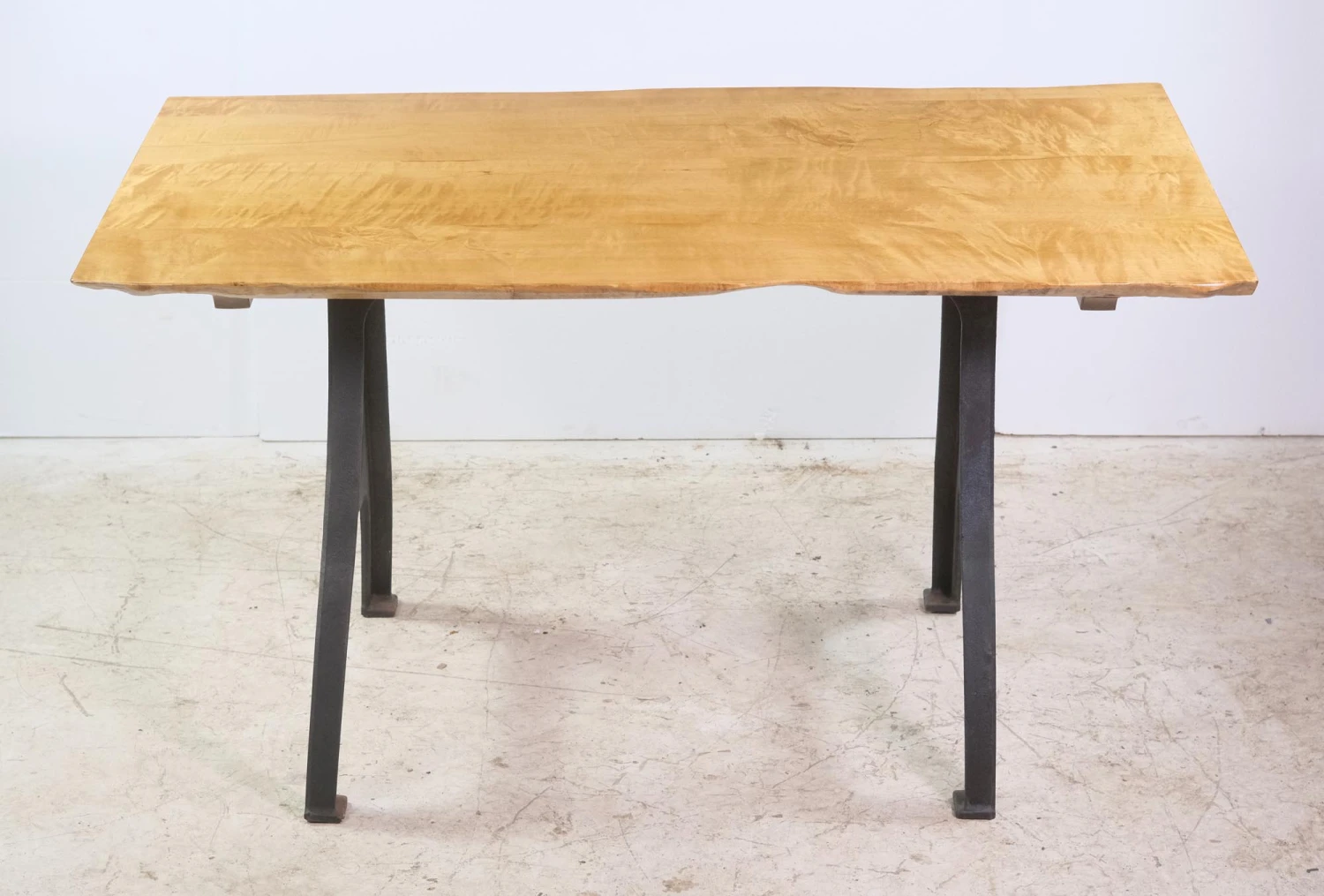 Handmade 4.6 Ft. Live Edge Maple Dining Table With Iron NY Legs