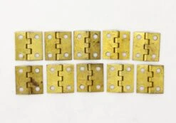 Set Of 10 Vintage 2.5 X 1.625 Brass Plated Steel Cabinet Hinges