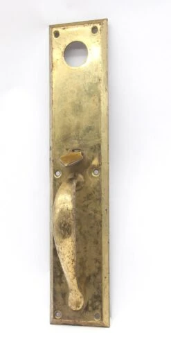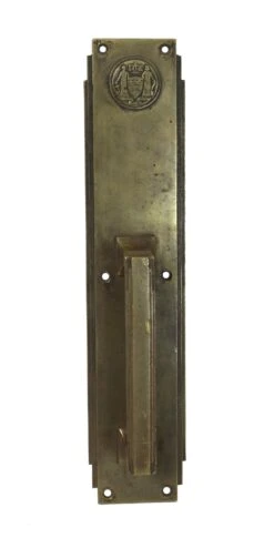 Vintage 14.5 In. Polished Brass Entry Door Pull With Cylinder Lock Insert & Thumb Latch