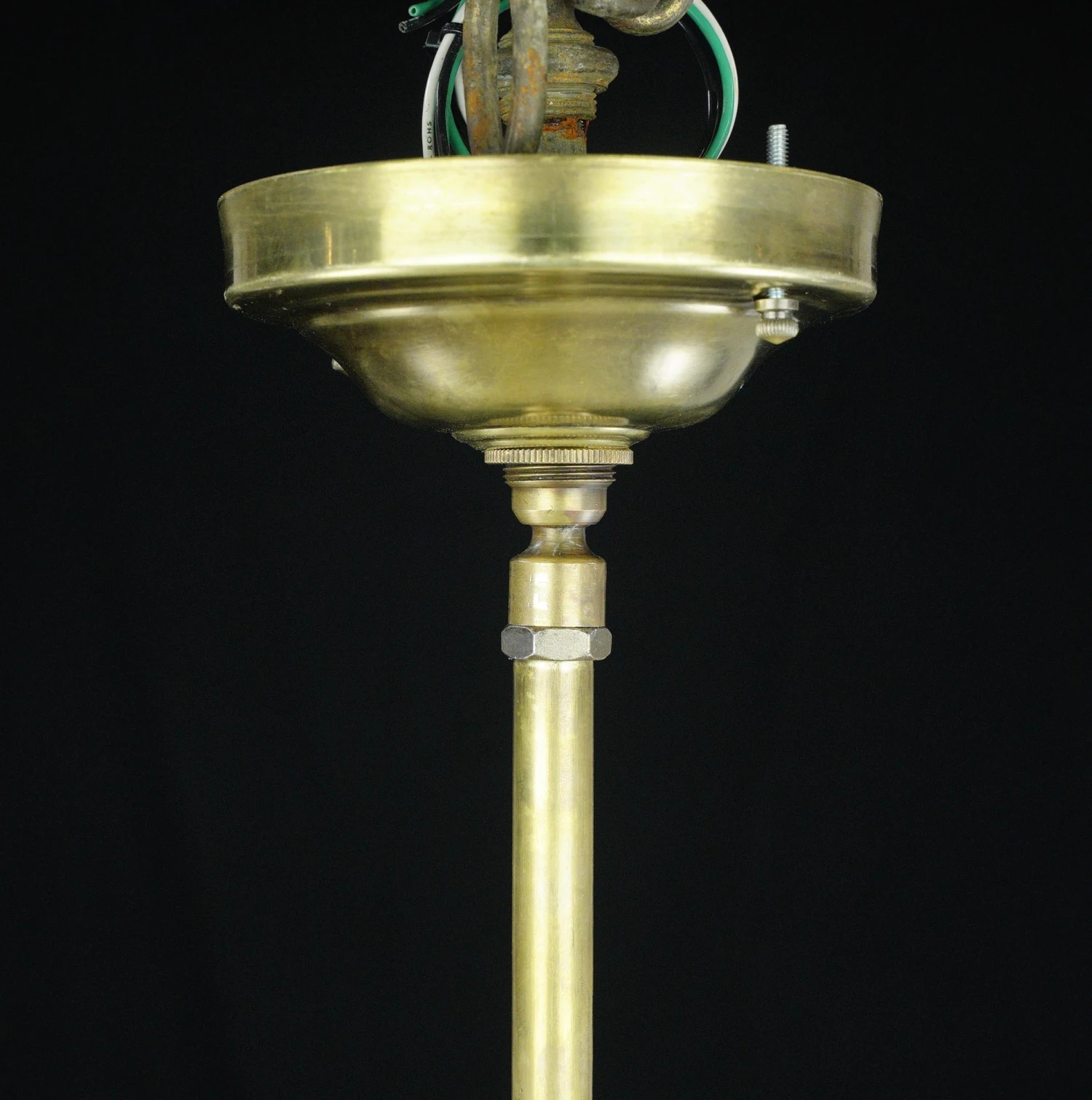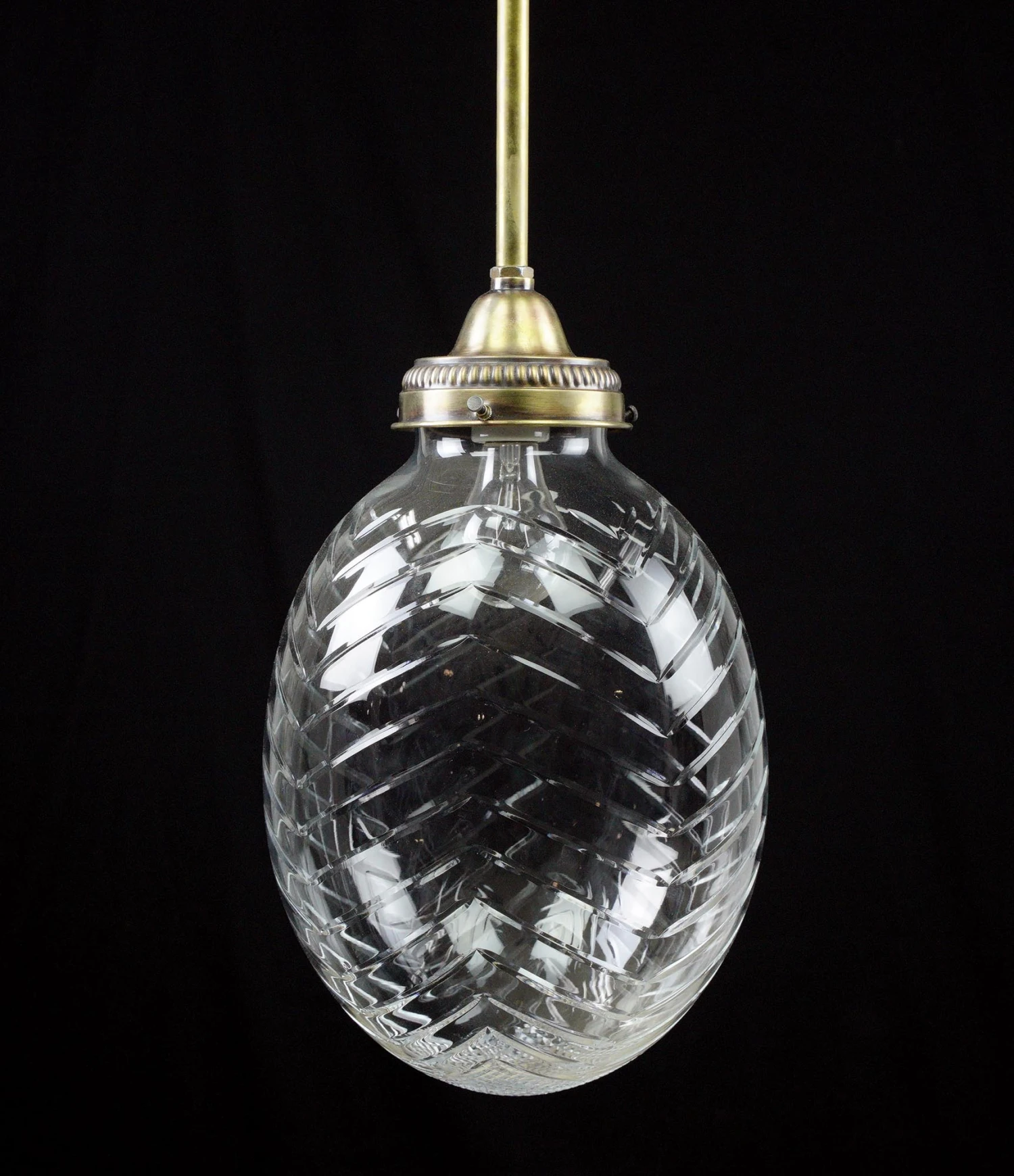 Italian Chevron Etched Crystal Egg Shaped Brass Pole Pendant Light