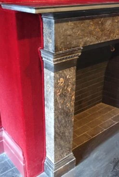 18th Century Louis XV Mantel With Hand Carved Rouge Royale Brown Marble
