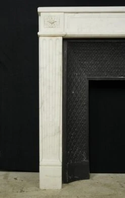 Antique Louis XVI Style White Marble Mantel With Cast Iron Insert